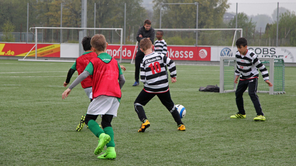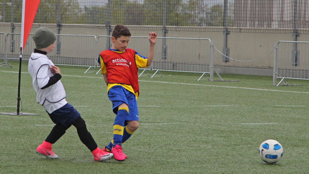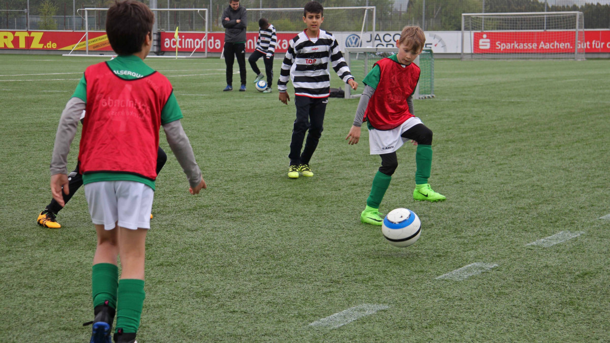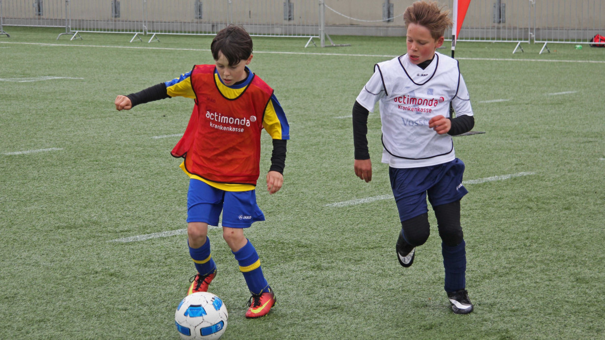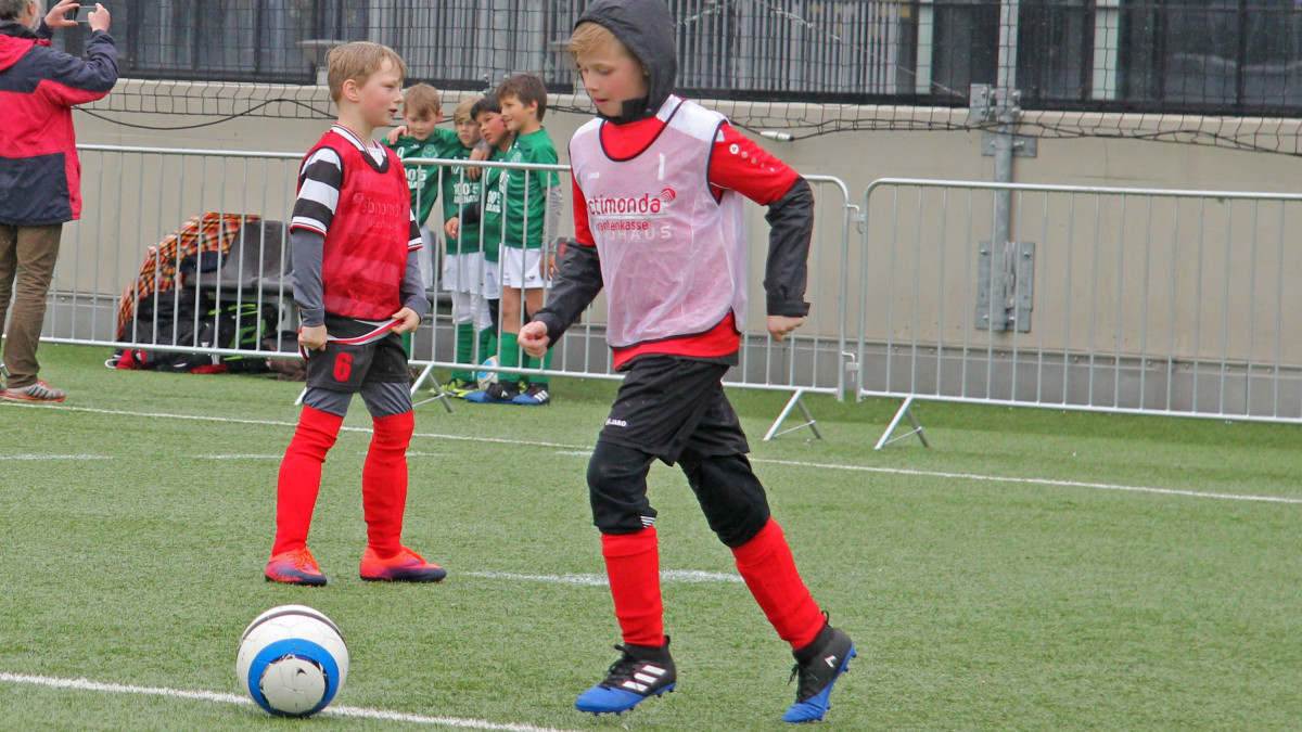 Der Wind brauste über das Parkhausdach am Tivoli und immer wieder gab es Regenschauer. Die Laune ließen sich die Aachener Grundschulkinder dennoch nicht verderben. Mit 14 Teams startete am Dienstag das actimonda Schulturnier.