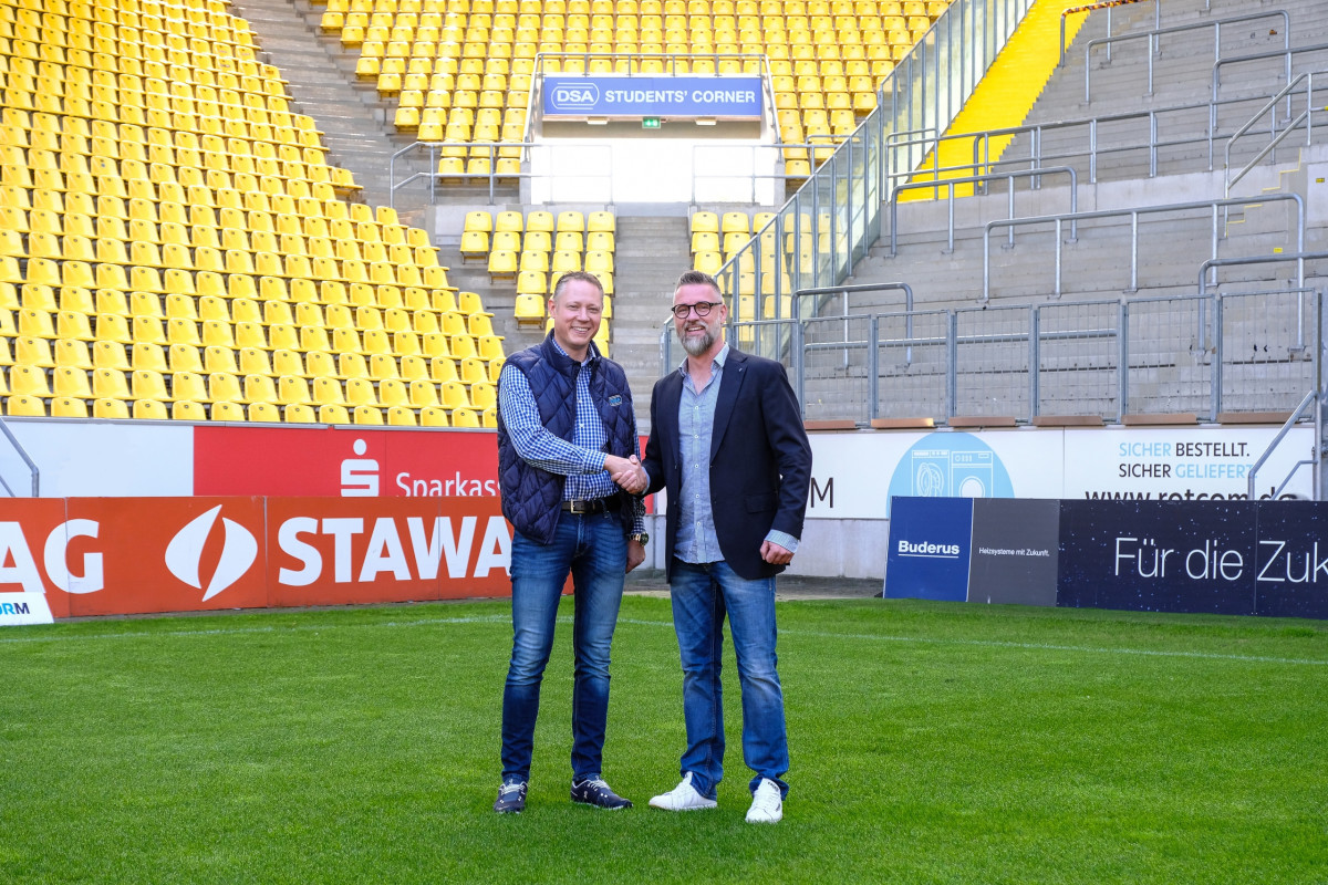 Seit Beginn der Fußballsaison 2023/2024 unterstützt DSA Daten- und Systemtechnik GmbH Alemannia Aachen als neuer Euregio Partner. Im Rahmen dieser Partnerschaft schlägt DSA unter anderem eine Brücke zwischen Alemannia und den Aachener Hochschulen und lädt bei allen Heimspielen der laufenden Saison jeweils 50 Studierende zum Stadionbesuch in den Students’ Corner ein.