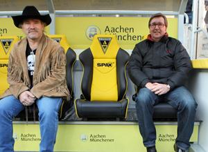 „Eine Ausstattung mit solch hochwertigen Sitzen der Firma Cobra gibt es bisher in Deutschland nur beim Bundesligisten Werder Bremen“, erklärt Michael Thomas, Geschäftsführer von SPAX und Dauergast auf dem Tivoli. Zur Einweihung vor dem Heimspiel gegen St. Pauli hatte Thomas extra das bekannte SPAX-Werbegesicht Konny Reimann aus den USA einfliegen lassen. Der zeigte sich begeistert von der Stimmung im Stadion und verfolgte gebannt die 90 Minuten von der Tribüne aus. „Hoffentlich ist es ein gutes Omen, dass mit den neuen Bänken gleich die drei Punkte eingefahren wurden“, freut sich Thomas.