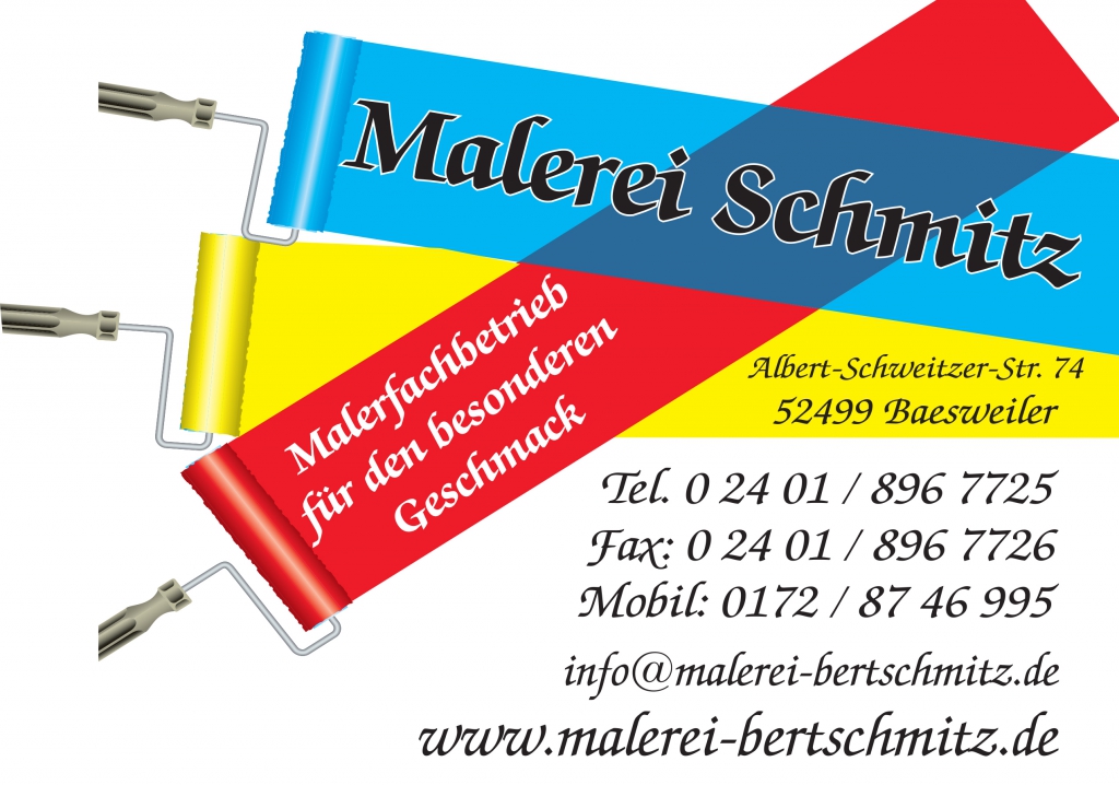 Malerei Schmitz ist Ihr Partner, wenn es um Maler- und Tapezierarbeiten geht. Getreu dem Motto „Wir bringen Farbe ins Spiel“, bietet Alemannias Euregio Partner absolute Professionalität und erstklassige Qualität, wenn es um Neu- oder Altbau, Innen oder Außen, Decke, Wand, Boden oder Fassade geht. Mehr Informationen: http://www.malerei-bertschmitz.de
