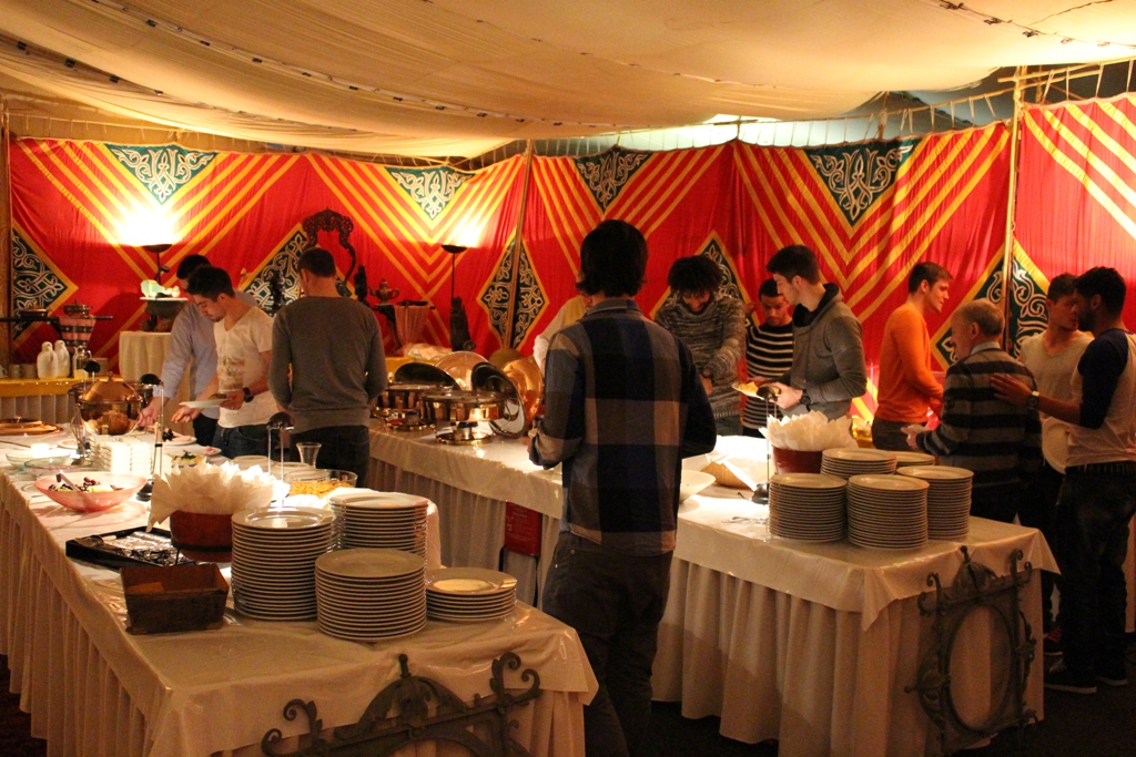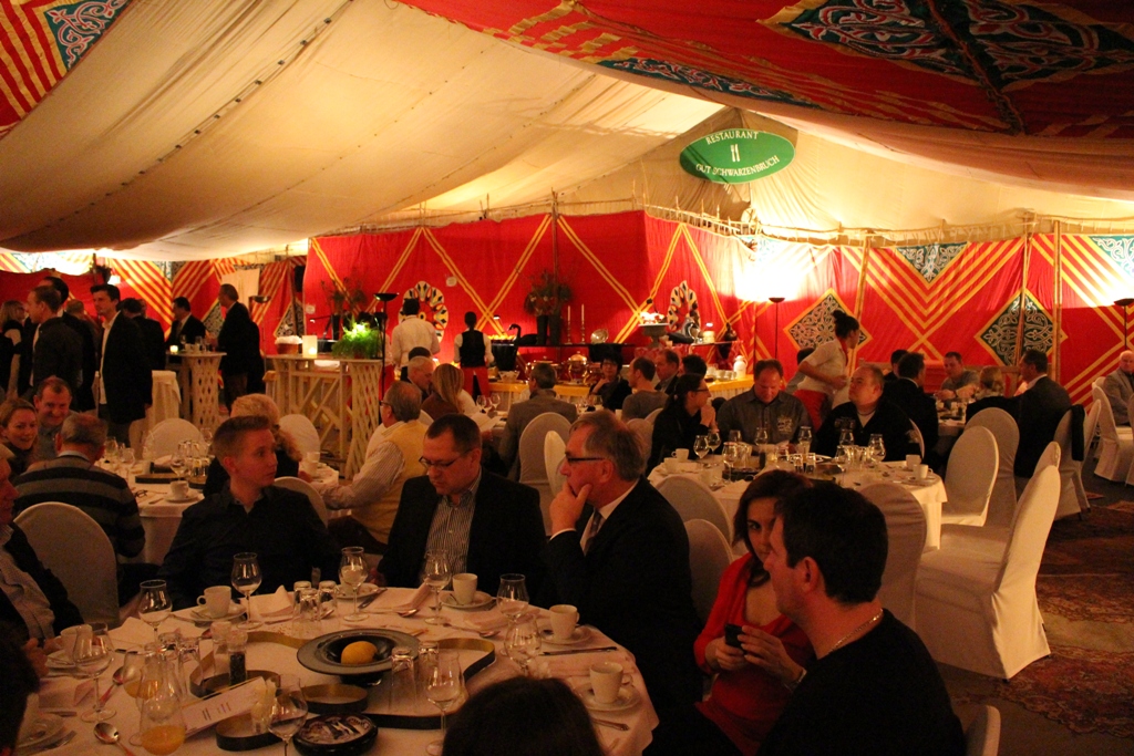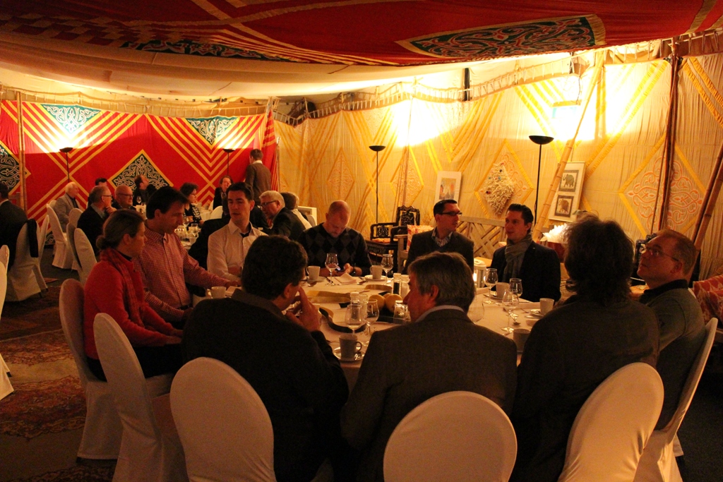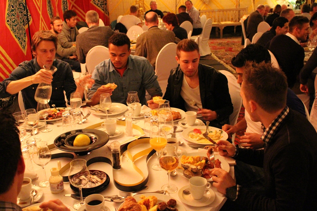 Nach dem Frühstück im Beduinenzelt auf Gut Schwarzenbruch gab das Trainerteam um Peter Schubert und Reiner Plaßhenrich einen exklusiven Einblick in ihre Arbeit. Im Gespräch mit Stadionsprecher Robert Moonen berichtete Chefcoach Schubert über die abgelaufene Hinserie, gab aber auch einen Überblick über den bisherigen Stand der Vorbereitung. „Nach der Hinrunde haben wir eine detaillierte Analyse durchgeführt. Es gibt viele Dinge zu verbessern, viele Abläufe haben sich in der letzten Zeit gut eingespielt“, so der Fußballlehrer. „Erfreulich ist, dass es im neuen Jahr bislang keine negativen Überraschungen gab“, sagte Schubert. Auf eventuelle Kaderveränderungen angesprochen, machte der 47-Jährige klar, dass er nach jetzigem Stand nicht davon ausgehe, dass es weder Zu- noch Abgänge zu verzeichnen gibt. Die Zeit bis zum Nachholspiel gegen Fortuna Köln ist knapp bemessen, schon am Samstag kommt der Tabellenführer an den Aachener Tivoli. „Wir haben die Möglichkeit, Fortuna Köln in dieser Saison zwei Mal zu schlagen, das werden nicht viele Vereine schaffen“, sagte Reiner Plaßhenrich, der die Anwesenden zudem über den aktuellen Stand im Nachwuchsbereich informierte. „Die großen Vereine in der Nachbarschaft machen uns das Leben schwer, doch wir sind trotz aller Umstände bemüht, in allen Jugendteams eine einheitliche Linie zu fahren“, berichtete Plaßhenrich zum Abschluss der kleinen Talkrunde.