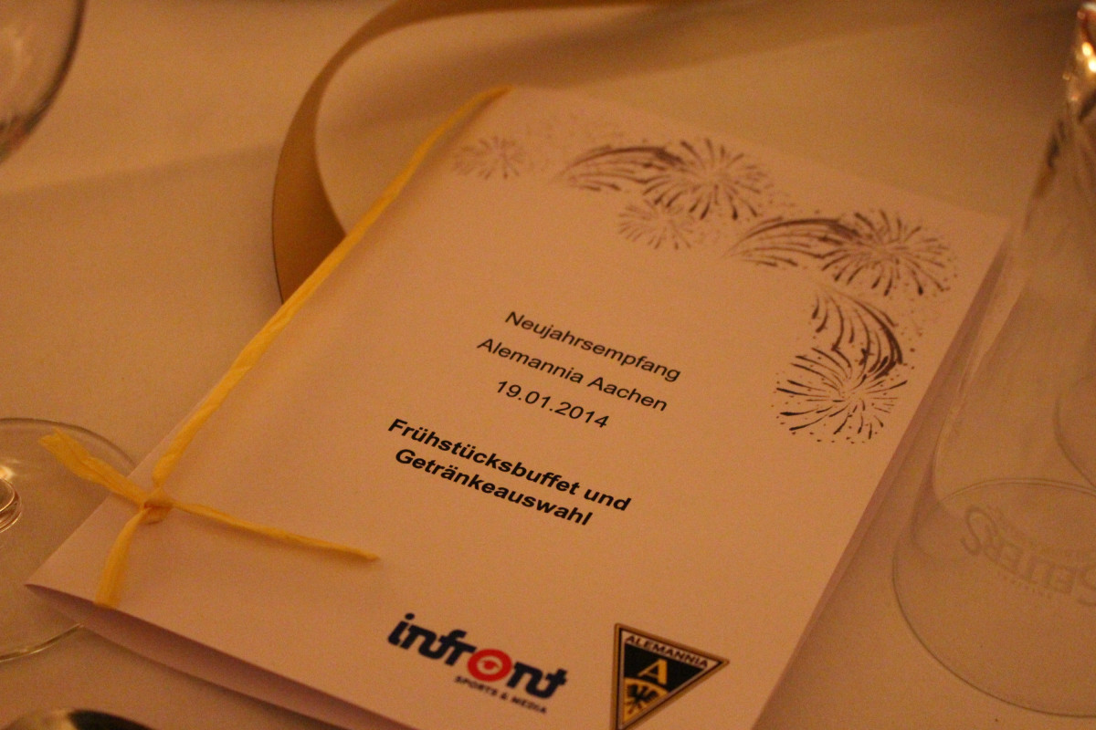 Mit einem gemeinsamen Frühstück läuteten Sponsoren, Partner sowie Spieler und Trainerstab der Alemannia am Sonntag, 19. Januar, das neue Jahr ein. Rund 150 Gäste folgten der gemeinsamen Einladung von Vermarkter Infront und Alemannia Aachen zum Neujahrsempfang auf Gut Schwarzenbruch.