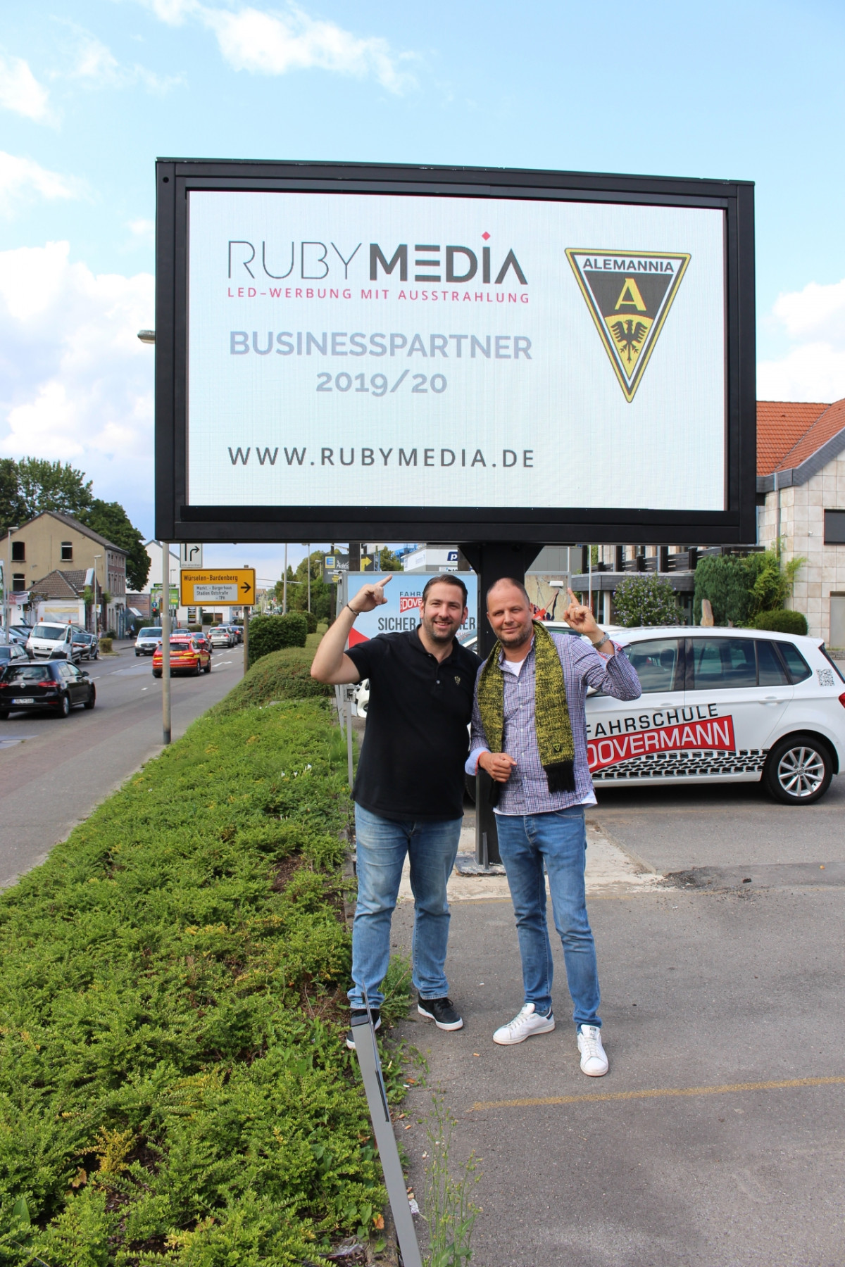 Alemannia Aachen hat einen neuen Business Partner: Ruby Media ist ab sofort Unterstützer der Schwarz-Gelben. Die Agentur bietet Werbeflächen rundum Aachen. Auf einer großen doppelseitigen LED-Videowand an der Roermonder Str. in Herzogenrath-Kohlscheid ist auch die Alemannia ab sofort vertreten.