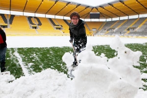 Am Wochenende vor dem Montagsspiel gegen den 1. FC Kaiserslautern hatte es in Aachen wieder kräftig geschneit. Die gesamte Stadionperipherie des Tivoli war in ein weißes Kleid gehüllt und der Schnee musste vor dem Topspiel gegen den aktuellen Tabellenführer aus der Pfalz geräumt werden. Daher hatte die Alemannia wieder freiwillige Helfer dazu aufgerufen, bei der Räumaktion zu unterstützen. Auch auf Alemannias Partner war Verlass. Wir möchten uns erneut bei unserem Euregio-Partner Gebr. Kutsch bedanken, der wieder mal dazu beigetragen hat, dass das Spiel im Rahmen der Sicherheitsvorschriften stattfinden konnte. Desweiteren gilt unser Dank dem Top-Partner Coca-Cola sowie dem Euregio-Partner Nobis Printen, die für die Verpflegung vor Ort gesorgt haben. Mit Fahrzeugen und Maschinen der Firma Boels Verleih GmbH wurden die Räumungsarbeiten bis kurz vor Spielbeginn vollzogen.