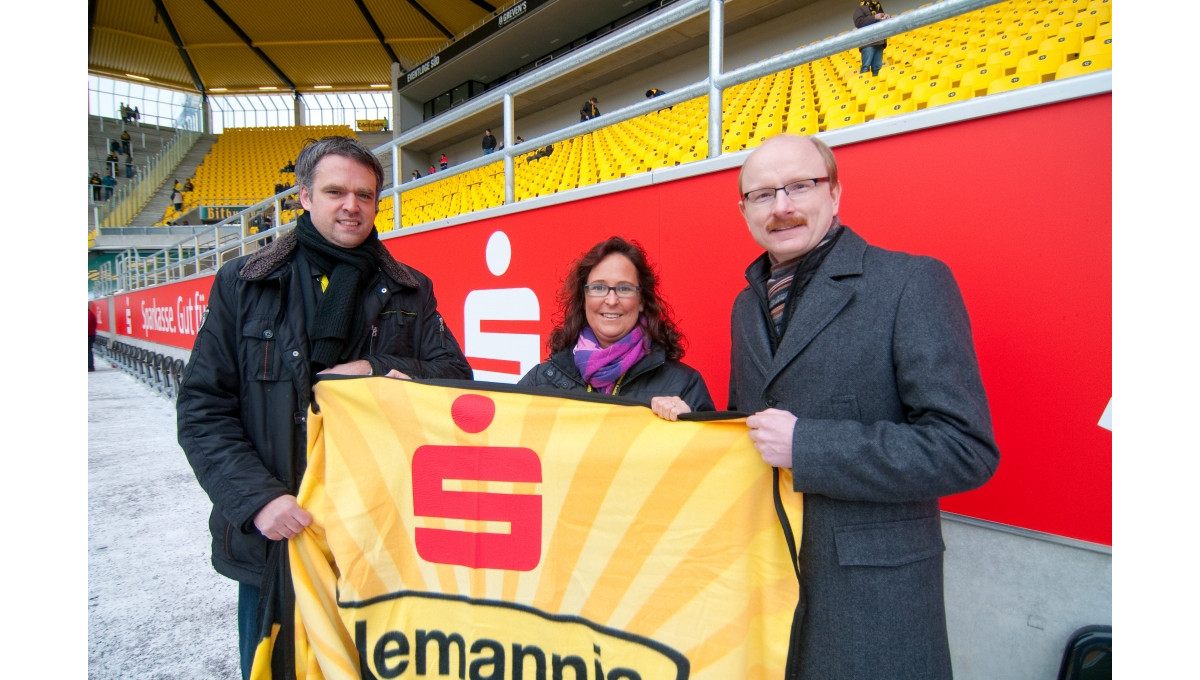 In den letzten Wochen bescherte Petrus den Aachenern nicht nur massenhaft Schnee, sondern auch dauerhaft eisige Temperaturen. So stellte der Besuch auf dem Tivoli besonders bei den letzten beiden Heimspielen selbst für hartgesottene Fans der Schwarz-Gelben eine echte Herausforderung dar. Vor allem die Rollstuhlfahrer litten in diesen Tagen unter den frostigen Temperaturen. „Die Rollstuhlfahrer trifft das kalte Wetter besonders hart. Sie sitzen das ganze Spiel über in ihrem Block und haben nicht wie andere Zuschauer die Möglichkeit, sich durch Bewegung aufzuwärmen oder in der Halbzeit ins Warme zu gehen“, erklärt Alemannias Behinderten-Beauftragte Petra Aretz. Aus diesem Grund hat die Sparkasse Aachen sich einen ganz besonderen Service für alle Rolli-Fahrer auf dem Tivoli einfallen lassen. Bereits seit dem Spiel gegen den 1. FC Kaiserslautern kann Aretz für alle Rollstuhlfahrer Decken bereithalten, die das Ausharren in der Kälte für alle erträglicher machen sollen. Die Decken wurden extra für diesen Zweck angefertigt und zeigen ein großes Alemannia-Wappen, das Logo der Sparkasse Aachen und die Silhouette der Kaiserstadt. Insgesamt 100 Decken spendete die Sparkasse, sodass sich selbst bei voller Auslastung der Rollstuhlfahrer-Plätze alle Fans damit wärmen können. „Die Sparkassen Aachen unterstützt auch sonst viele karitative Zwecke in Aachen. Und da die Rollstuhlfahrer im Tivoli auch noch auf der Sparkassen-Tribüne untergebracht sind, war es für uns selbstverständlich, ihnen einen solchen Service anzubieten“, erklärte Erich Timmermanns, Direktor Werbung und Öffentlichkeitsarbeit der Sparkasse Aachen. Er war beim Heimauftritt der Schwarz-Gelben gegen Oberhausen selbst zum Tivoli gekommen, um sich ein Bild von der Umsetzung der Aktion zu machen. „Wenn ich mir das Wetter heute anschaue, gab es wohl keine bessere Gelegenheit für eine solche Aktion“, freute er sich darüber, dass das Angebot so gut angenommen wurde.