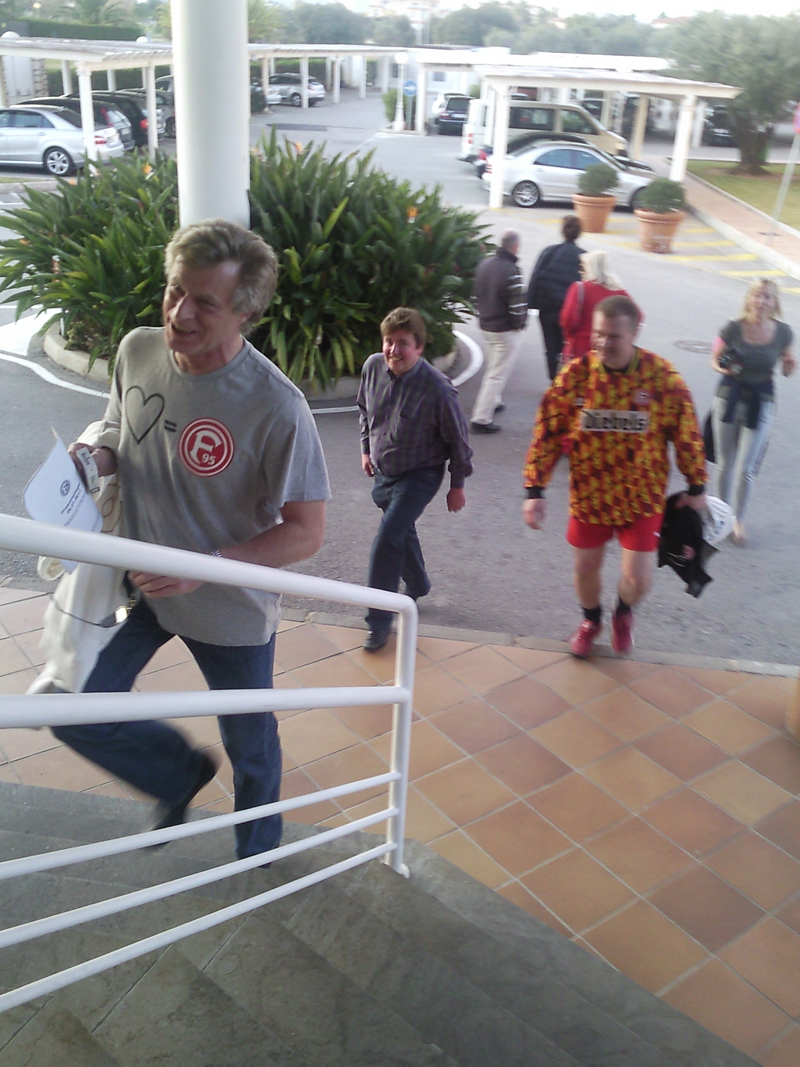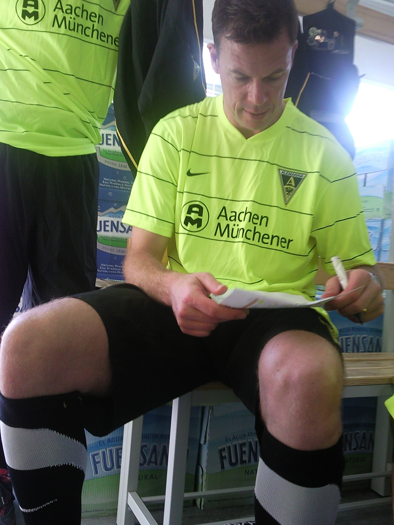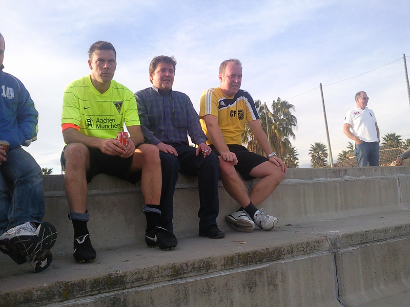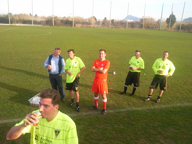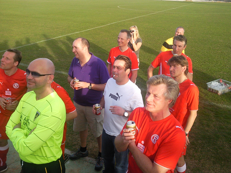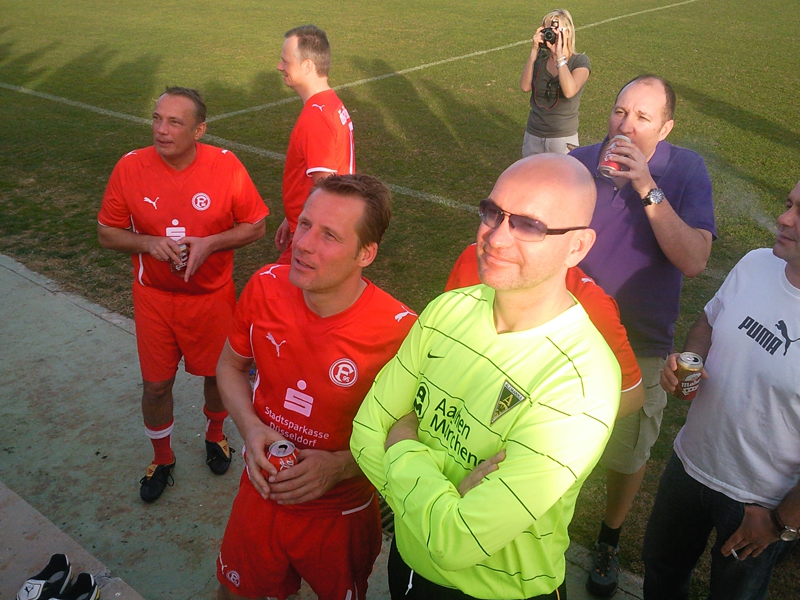 Erik Meijer ließ es sich am letzten Reisetag nicht nehmen mit der Sponsoren-Elf der Alemannia gegen die Sponsoren von Fortuna Düsseldorf anzutreten, die ebenfalls ihr Trainingslager in Alicante absolvierten. Nach einer sehr ausgeglichenen ersten Halbzeit konnte das schwarz-gelbe Team aber ohne die Tipps von Trainer Peter Hyballa nicht mehr mithalten, so dass das Spiel 3:7 verloren ging. Dennoch wurde nach der Niederlage gemeinsam angestoßen. Ein Rückspiel anlässlich der Rückrundenpartie der Profis in der Landeshauptstadt ist bereits geplant.