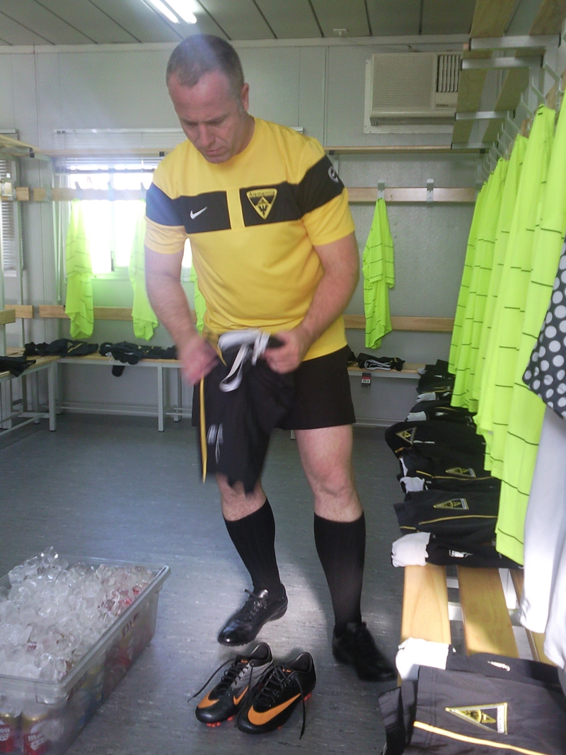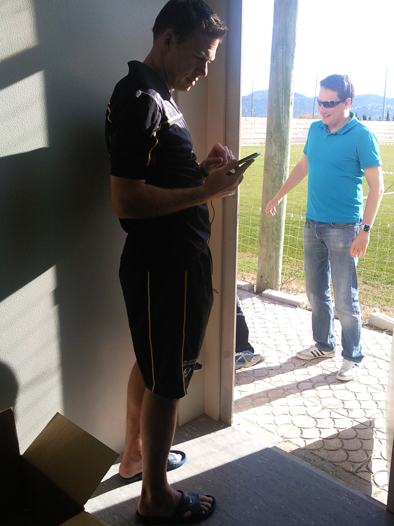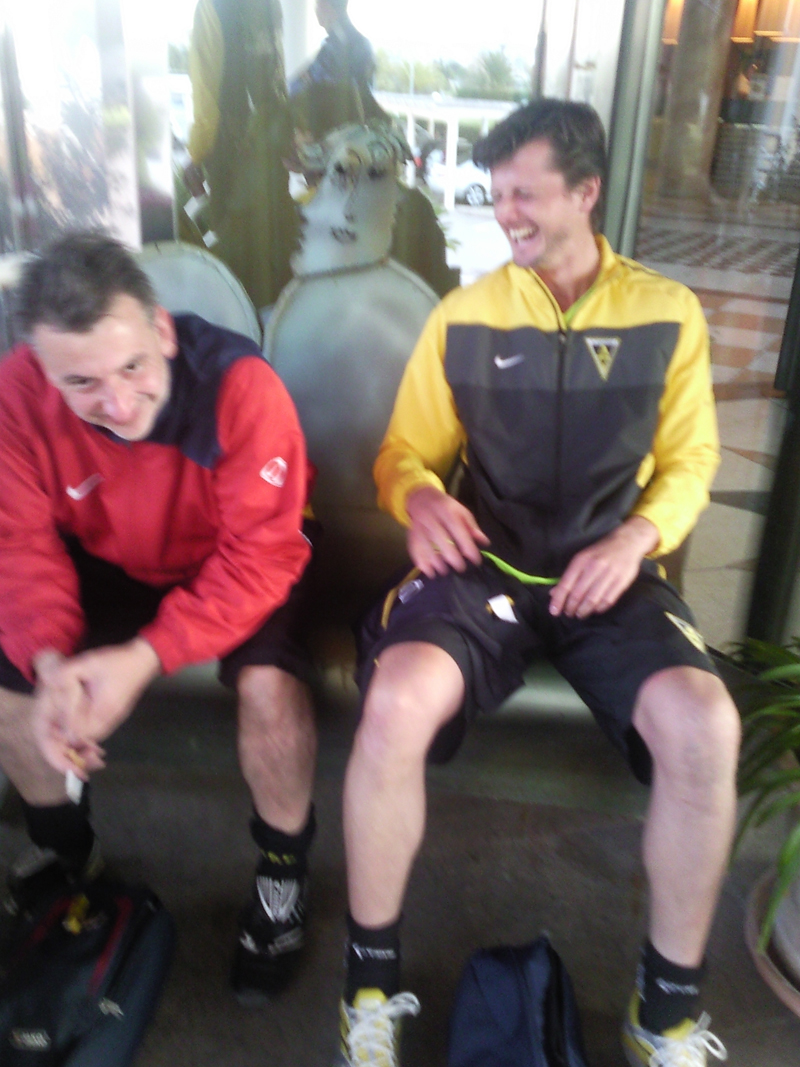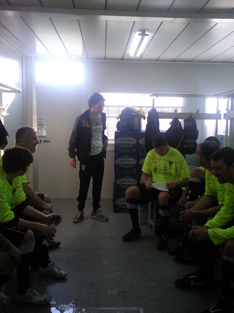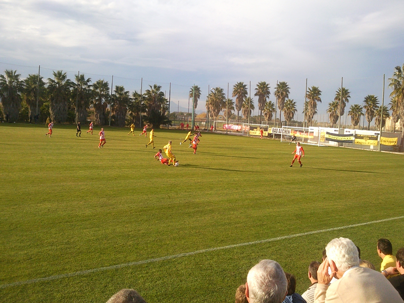 Erik Meijer ließ es sich am letzten Reisetag nicht nehmen mit der Sponsoren-Elf der Alemannia gegen die Sponsoren von Fortuna Düsseldorf anzutreten, die ebenfalls ihr Trainingslager in Alicante absolvierten. Nach einer sehr ausgeglichenen ersten Halbzeit konnte das schwarz-gelbe Team aber ohne die Tipps von Trainer Peter Hyballa nicht mehr mithalten, so dass das Spiel 3:7 verloren ging. Dennoch wurde nach der Niederlage gemeinsam angestoßen. Ein Rückspiel anlässlich der Rückrundenpartie der Profis in der Landeshauptstadt ist bereits geplant.