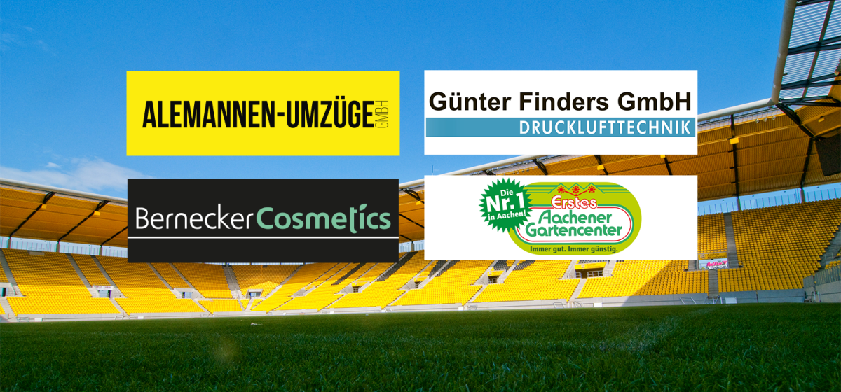 Die Alemannia freut sich über die Verlängerung der Partnerschaft mit vier Business Partnern: Die Alemannen Umzüge GmbH, die Günter Finders GmbH, das Erste Aachener Gartencenter und die Bernecker Cosmetics GmbH bleiben dem Regionalligisten weiterhin treu.