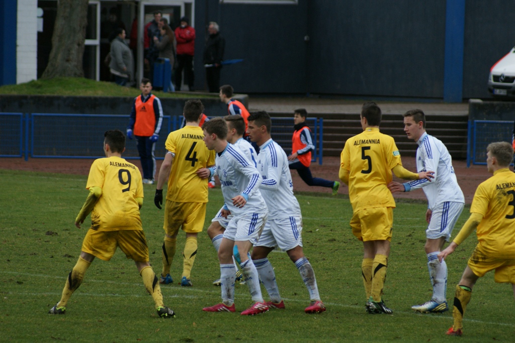 „Meine Mannschaft hat im ersten Abschnitt sehr stark gegen den Ball gespielt“, so Gillessen. Bis zur Halbzeit stand hinten die Null. Die jungen Alemannen verstanden es, die Defensive kompakt zu ordnen. In Halbzeit zwei reichte eine Unachtsamkeit, und die Königsblauen gingen mit 0:1 in Führung (49.). Das Gillessen-Team steckte trotzdem nicht auf und drängte auf den Ausgleich. Hitzig wurde es dann in Spielminute 59. Zunächst wird der Alemannia ein klarer Handelfmeter verweigert, die Gastgeber konterten und trafen zum 0:2-Endstand.