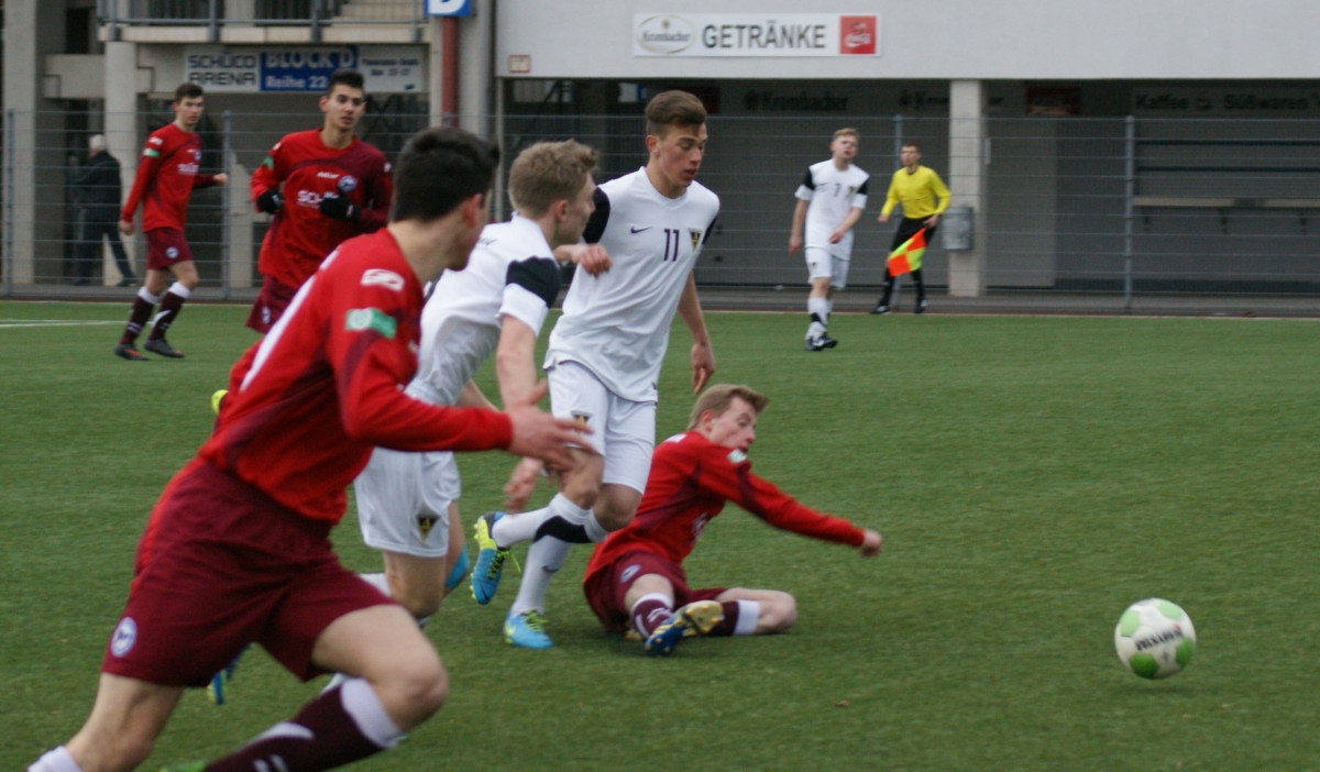 Hamza Saghiri brachte die Tivoli-Kicker nach zehn Minuten in Front. Die Freude über die Führung war allerdings nur von kurzer Dauer, denn keine 120 Sekunden später erzielten die Gastgeber durch Keanu Staude den Ausgleich. Dass dieses Ergebnis auch 80 Minuten noch Bestand hatte, lag vor allem an der mangelnden Chancenverwertung der jungen Alemannen. „Wir waren die aktivere Mannschaft, hatten mehr Ballbesitz, aber haben eine Vielzahl bester Chancen nicht nutzen können“, trauerte Coach Marc Gillessen am Ende zwei verlorenen Zählern hinterher.