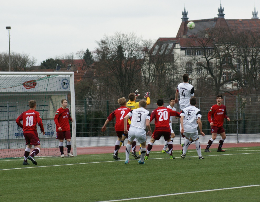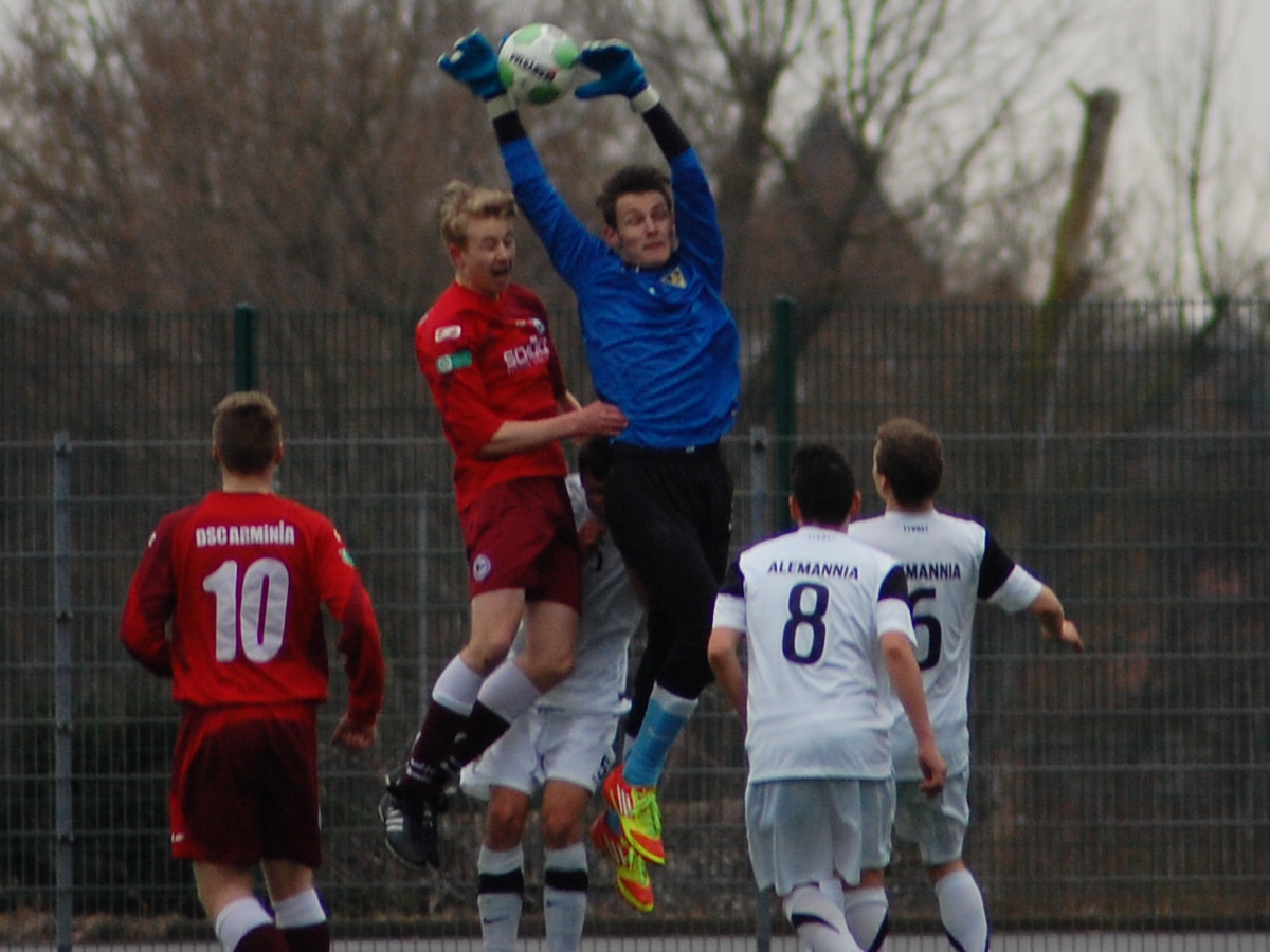 Die U17 der Alemannia kam am Samstag, 22.02.2014 in Bielefeld zu einem Teilerfolg. Auf dem Kunstrasenplatz an der Schüco-Arena trennte sich das Aachener Bundesligateam von der gastgebenden Arminia mit 1:1. (1:1). Trotz des Punktgewinns bleiben die Schwarz-Gelben allerdings Tabellenletzter.