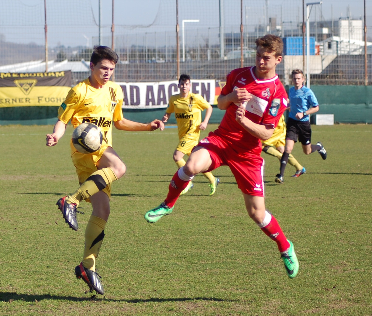 Die U17 der Alemannia wartet weiter auf den ersten Rückrundenerfolg. Gegen den 1. FC Köln stand die Truppe von Marc Gillessen nach 80 Minuten erneut mit leeren Händen da, weil die Gäste durch einen zweifelhaften Handelfmeter zu einem 1:0-Erfolg kamen.