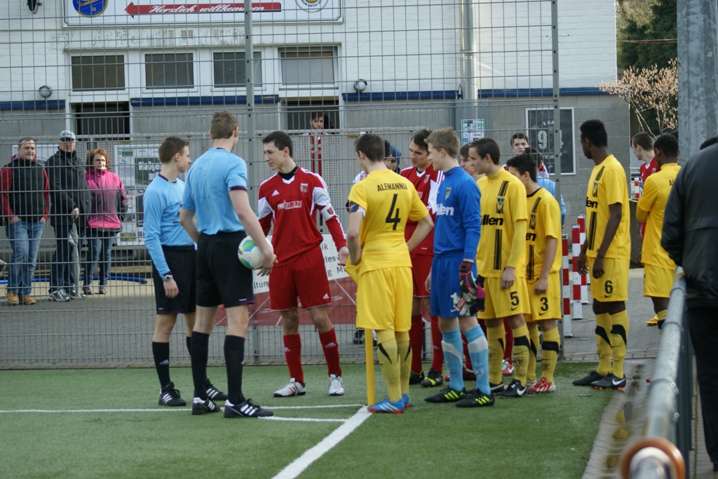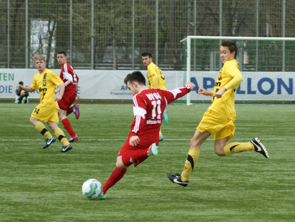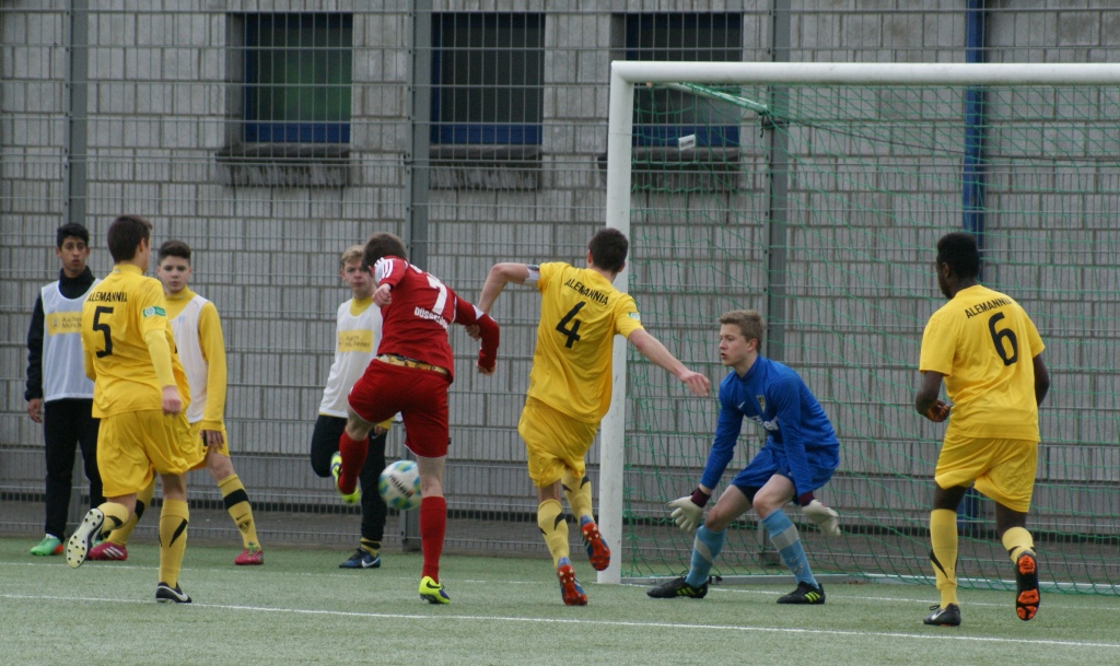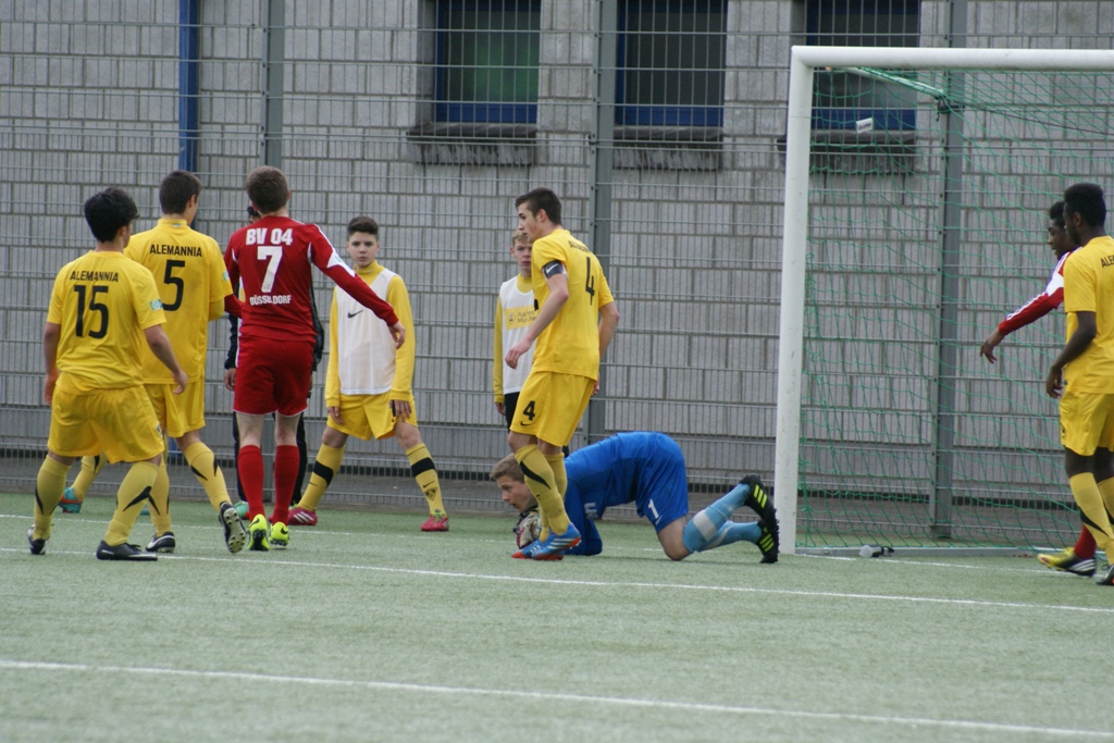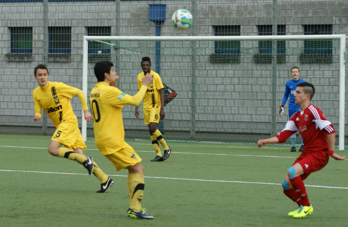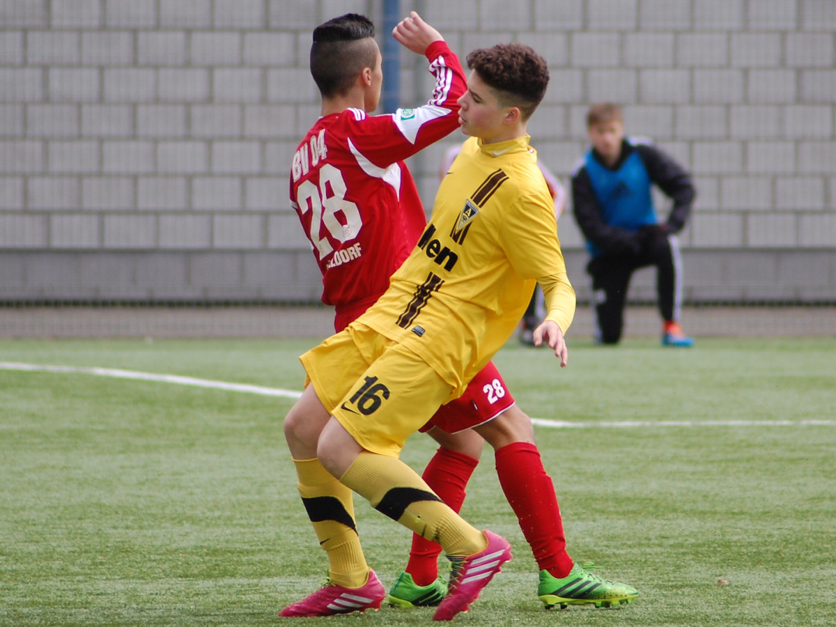 Die Chancen auf einen Verbleib in der Junioren-Bundesliga sind für die U17 der Alemannia am Wochenende weiter gesunken. Im Kellerduell beim Vorletzten BV 04 Düsseldorf unterlag das Team von Marc Gillessen am Samstagmorgen, 15.03.2014, deutlich mit 0:4 (0:2). „Die Mannschaft hat heute sämtliche Grundtugenden vermissen lassen“, bilanzierte ein enttäuschter Trainer nach der Partie.