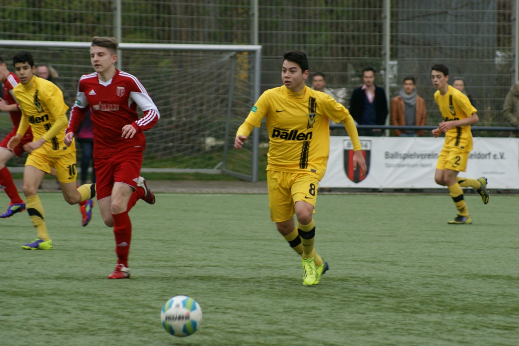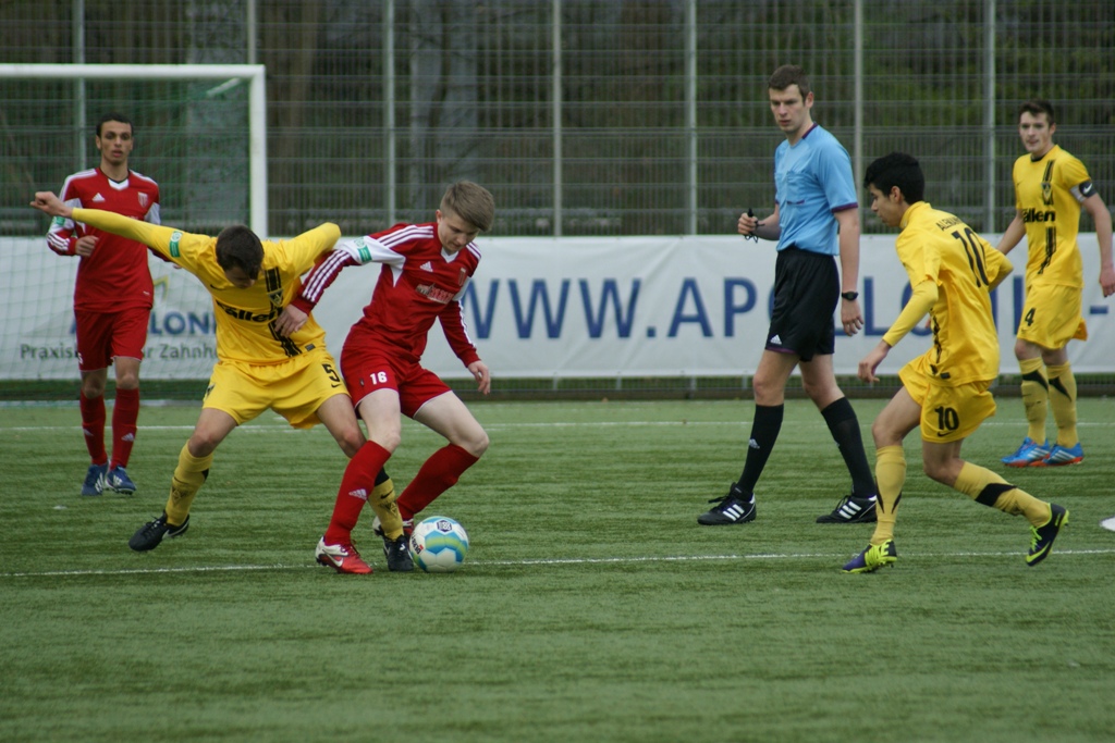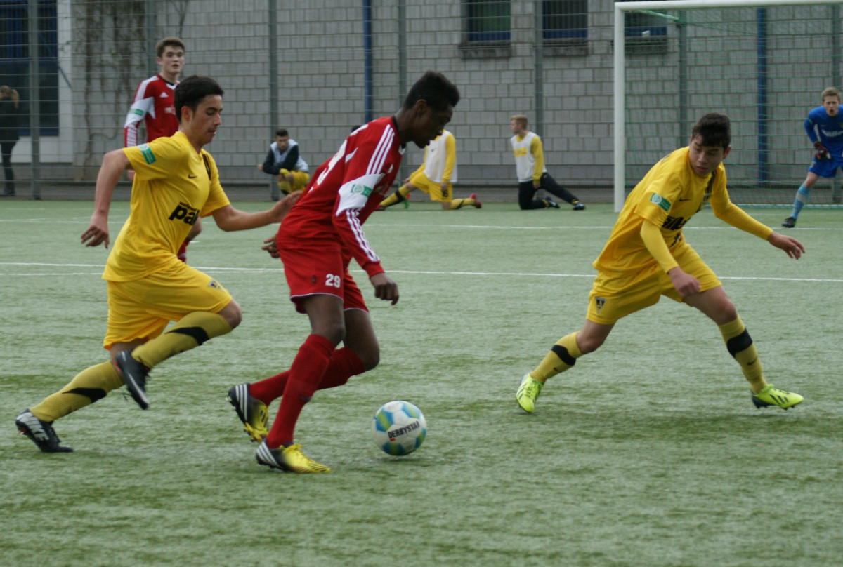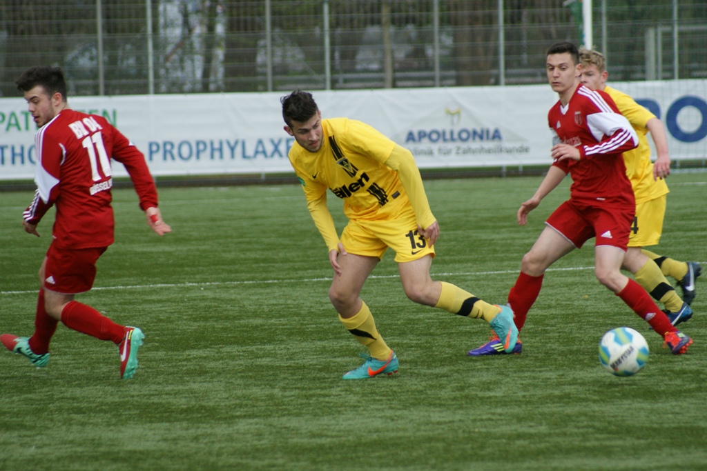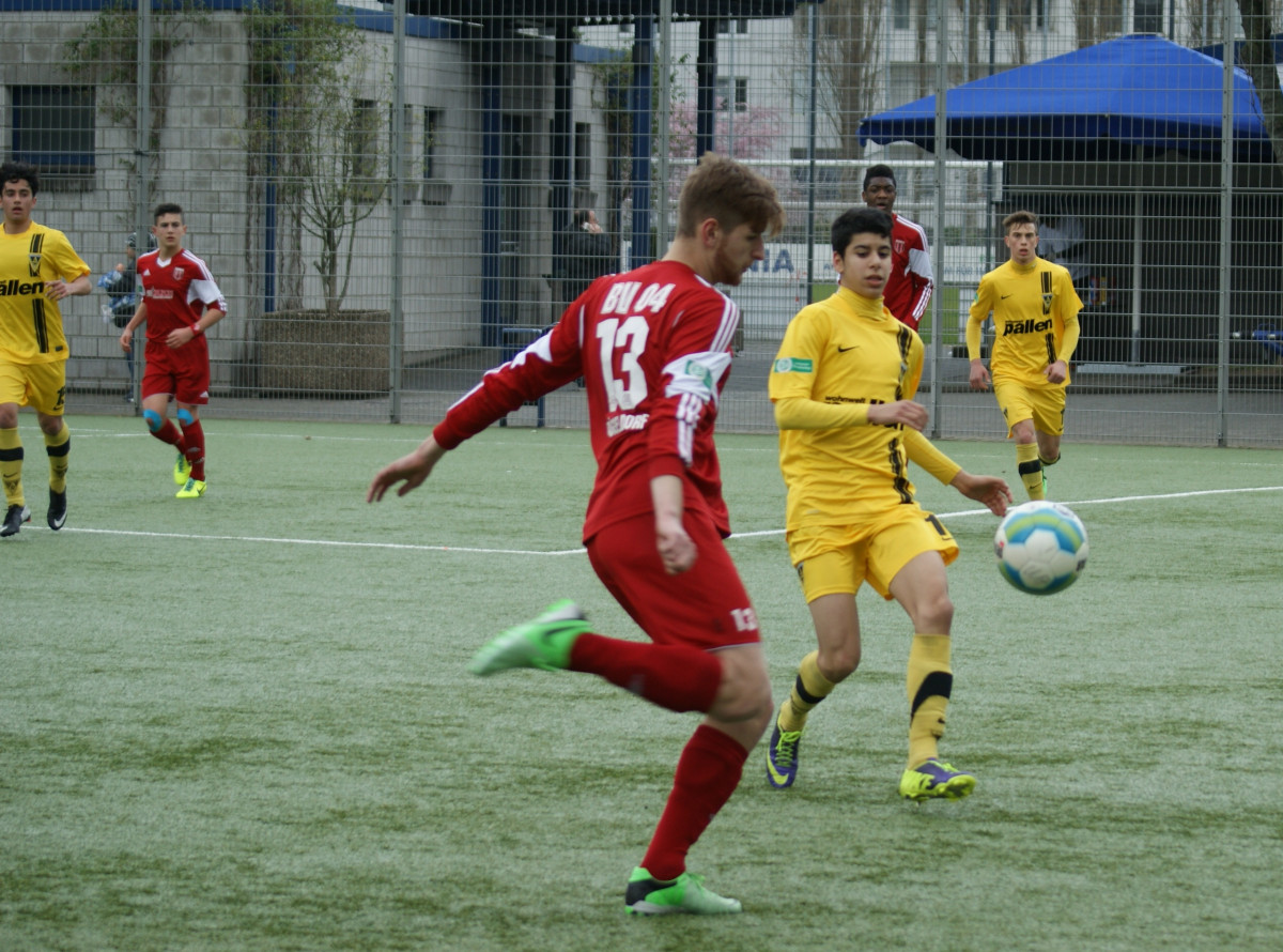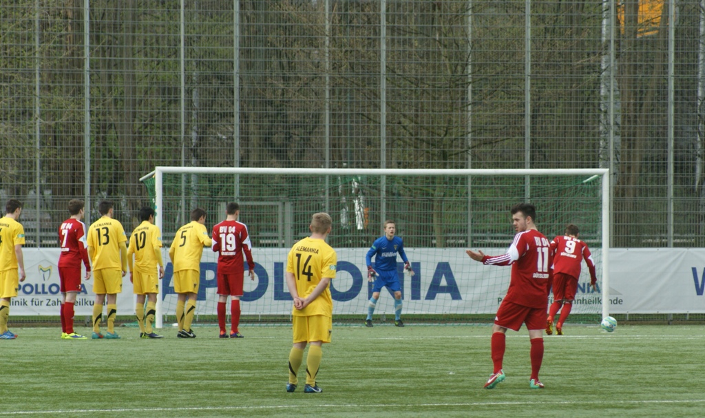 Die Chancen auf einen Verbleib in der Junioren-Bundesliga sind für die U17 der Alemannia am Wochenende weiter gesunken. Im Kellerduell beim Vorletzten BV 04 Düsseldorf unterlag das Team von Marc Gillessen am Samstagmorgen, 15.03.2014, deutlich mit 0:4 (0:2). „Die Mannschaft hat heute sämtliche Grundtugenden vermissen lassen“, bilanzierte ein enttäuschter Trainer nach der Partie.