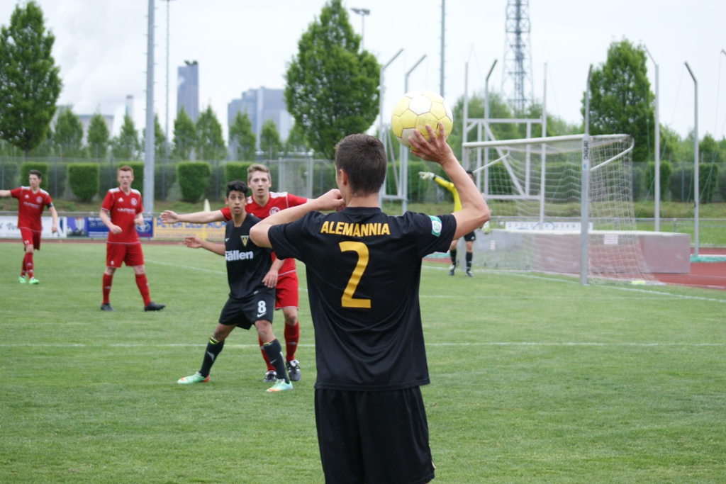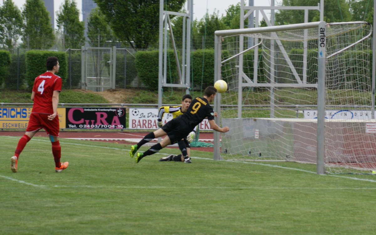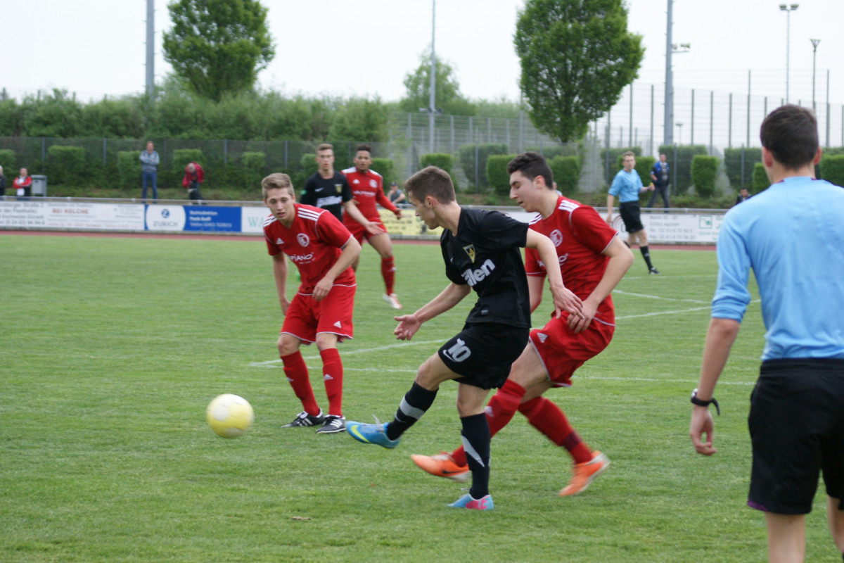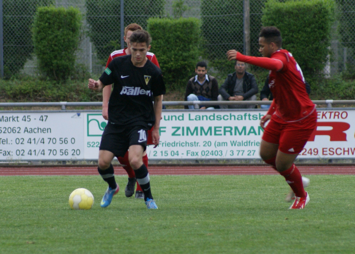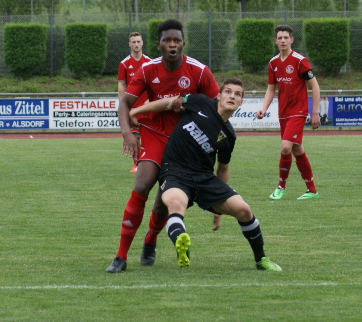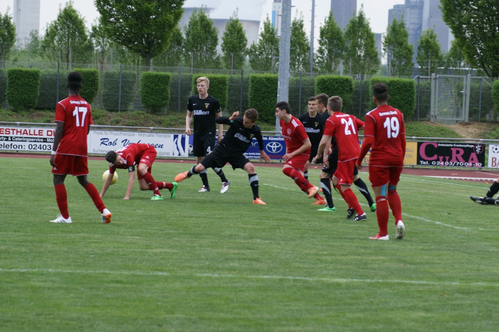 Die U19 der Alemannia bleibt Spitzenreiter Viktoria Köln auf den Fersen. Im Lokalderby beim Tabellenletzten Germania Dürwiß siegten die Schwarz-Gelben deutlich mit 7:0 (4:0) und haben damit weiterhin zwei Zähler Rückstand auf den Spitzenreiter von der rechten Rheinseite.