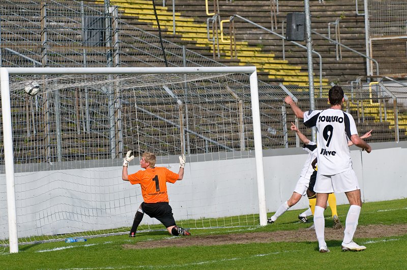 Eine Viertelstunde passierte auf holprigem Geläuf nicht viel vor beiden Toren, bis Kleve eine Standardsituation zur Führung nutzte. Nach einem Freistoß von Mahr parierte Alemannia-Keeper Krumpen einen Sowislo-Kopfball zunächst noch stark, aber im Nachsetzen schob Akpinar das Leder dann doch über die Linie – 0:1 (16.). Die Antwort der Tivoli-Kicker ließ keine fünf Minuten auf sich warten. Uludag setzte sich am linken Flügel durch und seine Hereingabe bugsierte Kleves Versteegen mit Unterstützung des rechten Innenpfostens ins eigene Tor - 1:1 (21.). Nur sechs Minuten später vergaben Gäste die erneute Chance zur Führung. Jansen traf bei einem Zweikampf Ball und Gegenspieler Koep, was Schiedsrichter Wollenweber zu einem Strafstoßpfiff animierte. Der Gefoulte trat selbst an, doch Krumpen konnte die Kugel mit den Füßen abwehren (27.). Wilschey hatte noch vor der Pause die Führung für die Schwarz-Gelben auf dem Fuß, doch Gästeschlussmann Horsmann konnte den Schlenzer von der Strafraumgrenze mit den Fingerspitzen noch entschärfen (31.).