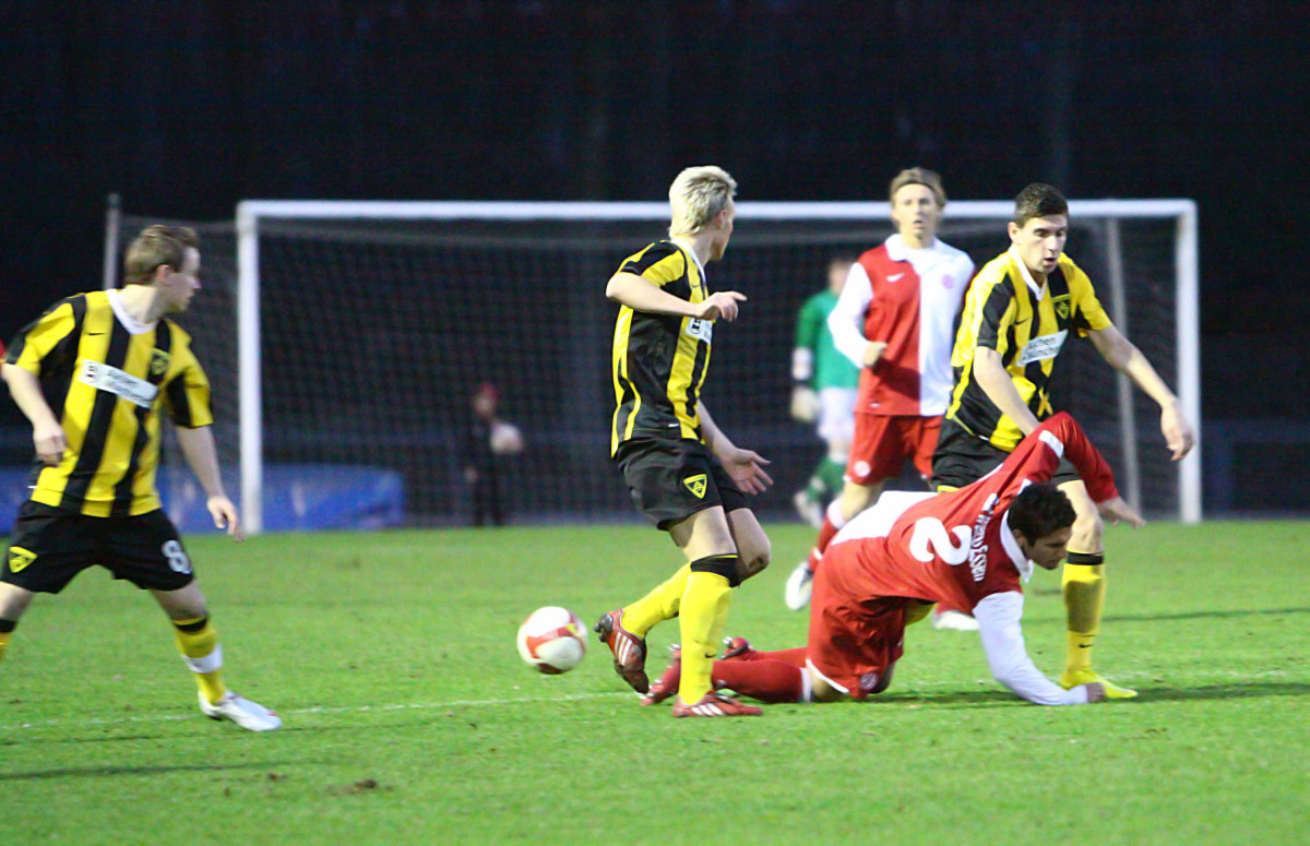 Eric van der Luer konnte vor 100 Zuschauern an der Essener Seumannstraße erneut auf die Dienste von Thomas Stehle zählen und auch Andreas Lasnik sammelte Wettkampfpraxis im U23-Team. Die jungen Alemannen erwischten den besseren Start und tauchten nach einer Viertelstunde erstmals gefährlich vor dem RWE-Gehäuse auf. Schattner legte die Kugel von der Grundlinie für Engelbrecht auf, dessen Schuss in letzter Sekunde noch abgeblockt werden konnte. Besser machten es die Schwarz-Gelben nach 34 Minuten, als Muhovic die Kugel geschickt für Lasnik durchstecken konnte, der das Auge für den mit geeilten Engelbrecht hatte. Der Torjäger der Tivoli-Reserve hatte keine Mühe, aus kurzer Distanz sein 9. Saisontor im 12. Einsatz zu erzielen – 0:1. Die erste Aachener Nachlässigkeit hätte jedoch schon wenige Minuten später zum Ausgleich geführt, doch Tokut vergab alleine vor Krumpen nahezu kläglich (37.).