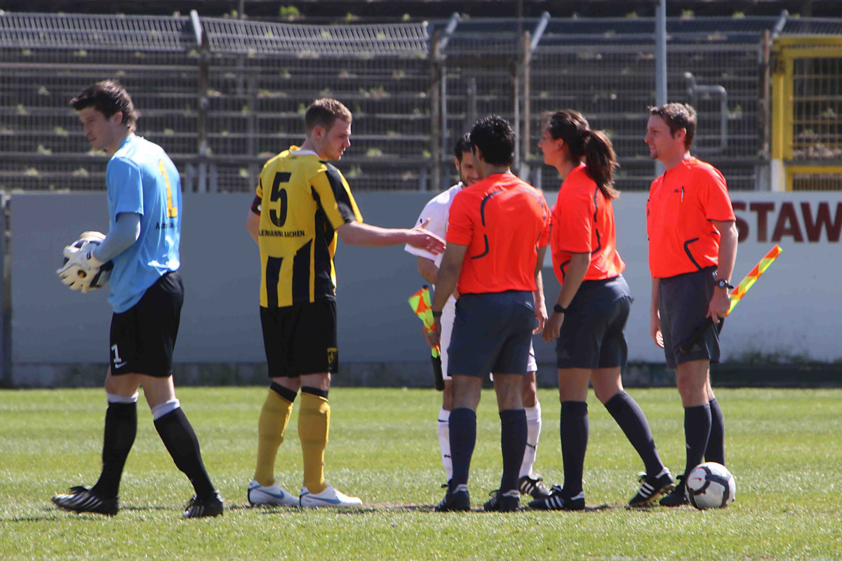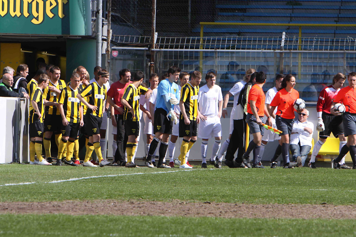 Eric van der Luer musste auch im 26. Spiel eine veränderte Startformation ins Rennen schicken. Abdul Özgen und Alper Uludag standen nicht für einen Einsatz zur Verfügung, dafür rückten Sebastian Jansen und Alexander Keller in die Anfangself. Zudem erhielt Thomas Unger eine erneute Bewährungsprobe zwischen den Pfosten. Fünf Minuten waren gespielt, als der frühere Karlsruher gegen Ropkas in höchster Not retten konnte. Auf der Gegenseite zielte Tibor Heber nach feiner Einzelleistung aus spitzem Winkel nur ans Außennetz (12.). Nach einer Standardsituation fiel die Führung für die Schwarz-Gelben. Eine Rechtsecke von Heber köpfte Thomas Stehle aus sieben Metern wuchtig zum 1:0 in die SGW-Maschen (24.).