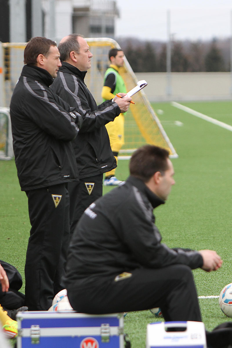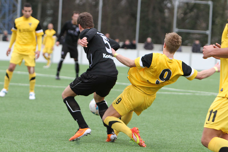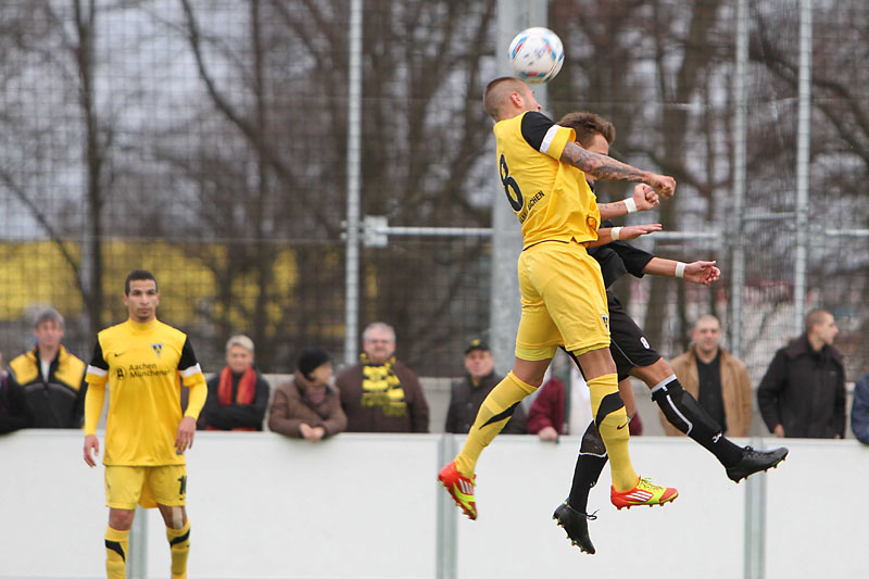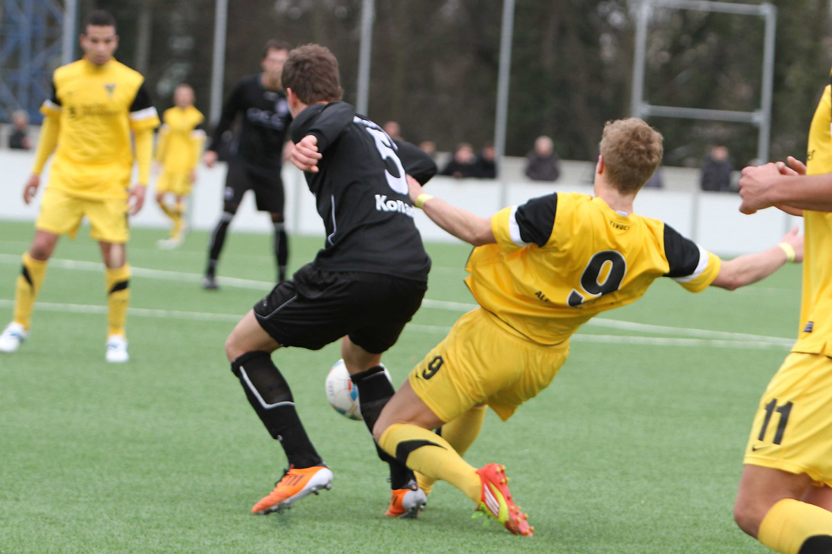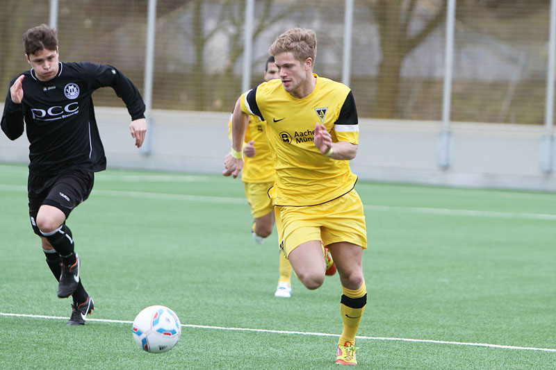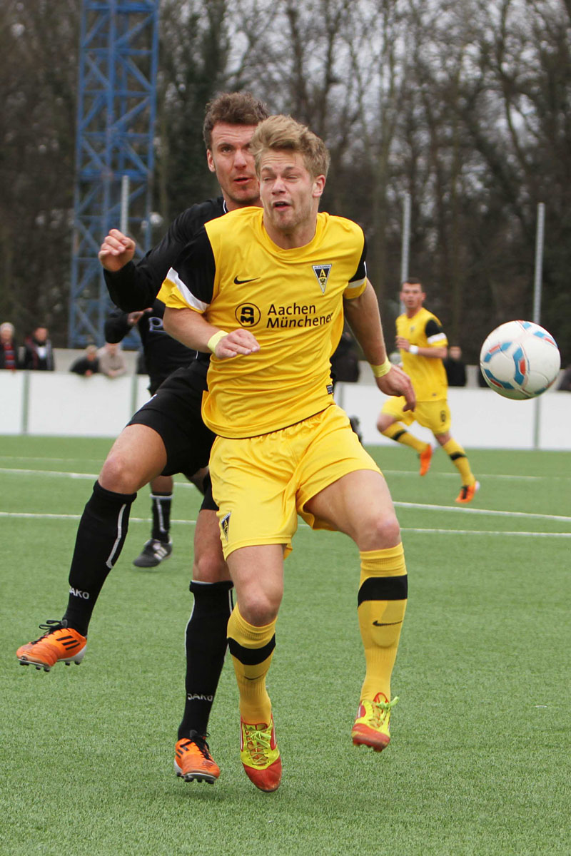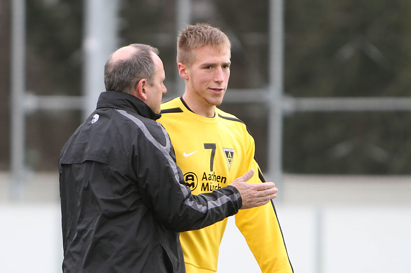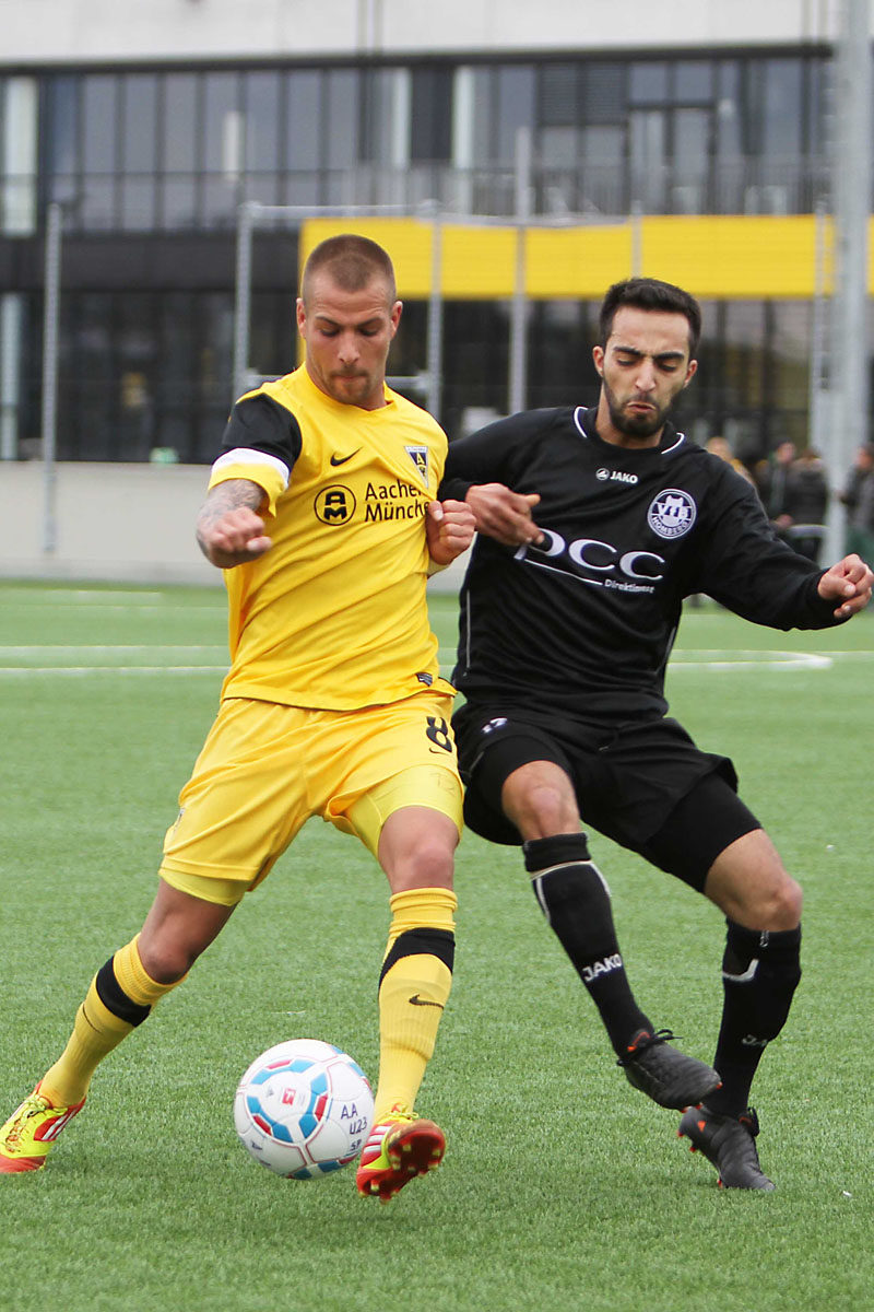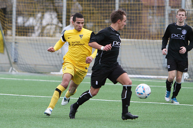 Vor 172 Zuschauern sammelten auf dem Kunstrasenplatz „Alkmaar“ die Profis Tim Krumpen, Thomas Stehle, Marco Stiepermann und Anour Hadouir Spielpraxis bei den Amateuren. Die Partie verlief zunächst ausgeglichen, bis die Tivoli-Kicker die erste Gelegenheit eiskalt zur Führung nutzen. Ein Diagonalball von Wilschrey erreichte Hadouir, der sich die Chance im Strafraum freistehend nicht nehmen ließ und das Leder abgezockt ins lange Ecke versenkte – 1:0 (20.). Pozder scheiterte nach 32 Minuten an Gästekeeper Carpentier, der zwei Minuten später dennoch erneut hinter sich greifen musste. Eine maßgeschneiderte Rechtsflanke von Hadouir konnte Kapitän Frau zum 2:0 einköpfen (35.). Wenig später hätte die Partie frühzeitig entschieden sein können, als Hermes nach einem Solo im Strafraum von Acar zu Fall gebracht wurde. Schiri Bernhardt wollte jedoch eine Schwalbe gesehen haben und verwarnte den entsetzten Aachener (39.). So wären die Gäste kurz vor der Pause beinahe noch ins Spiel zurückgekommen, als Sogolj das Leder knapp links am Tor vorbeisetzte (43.).