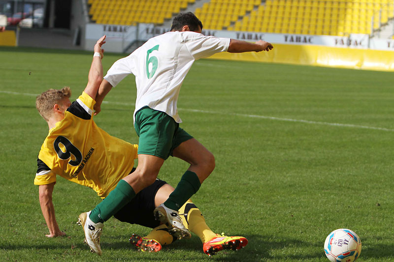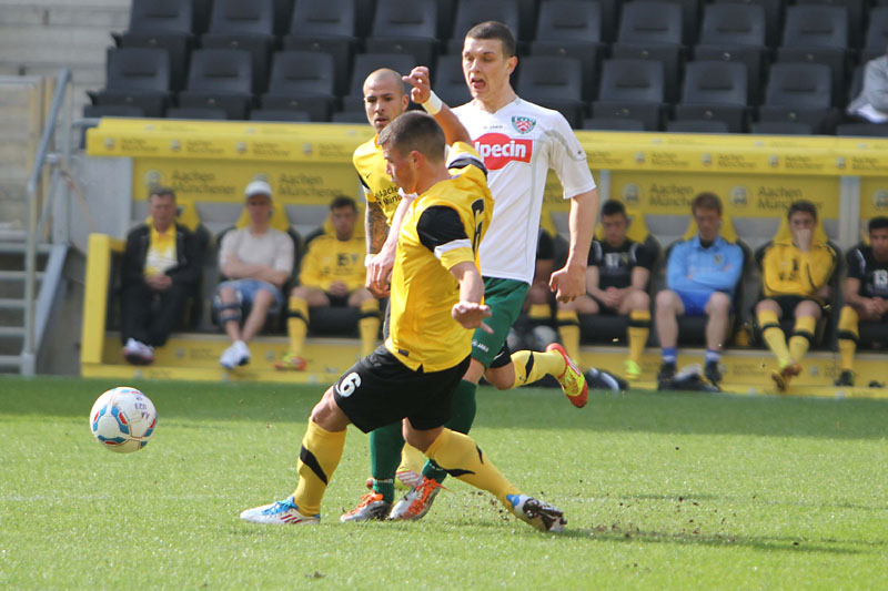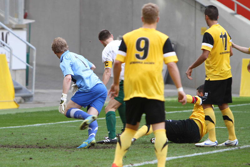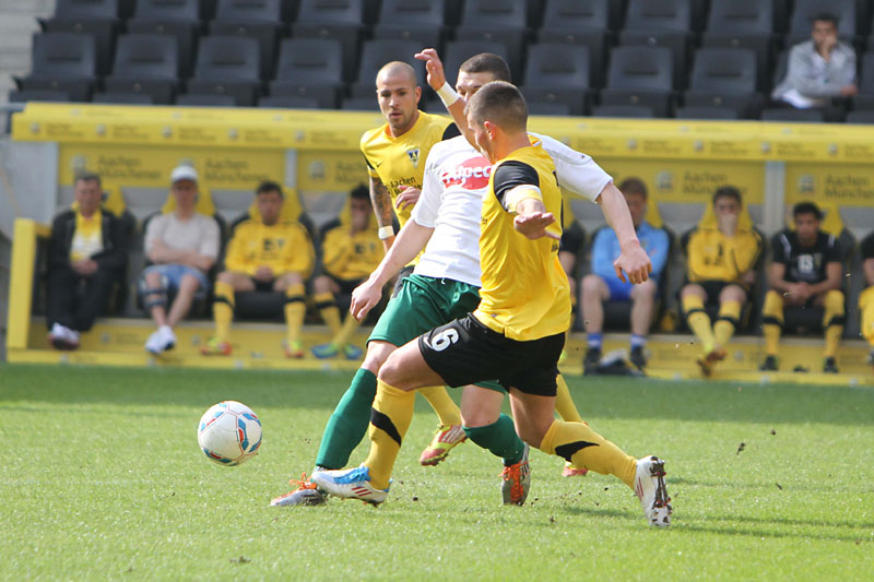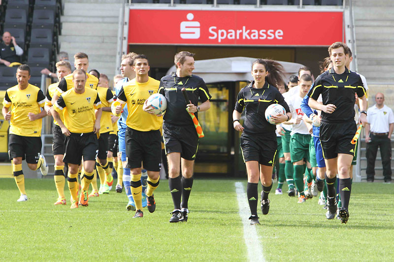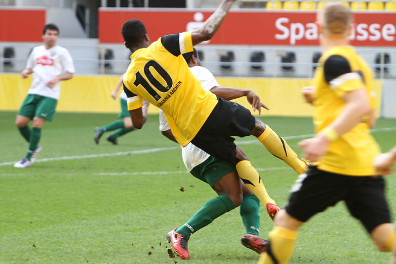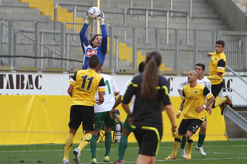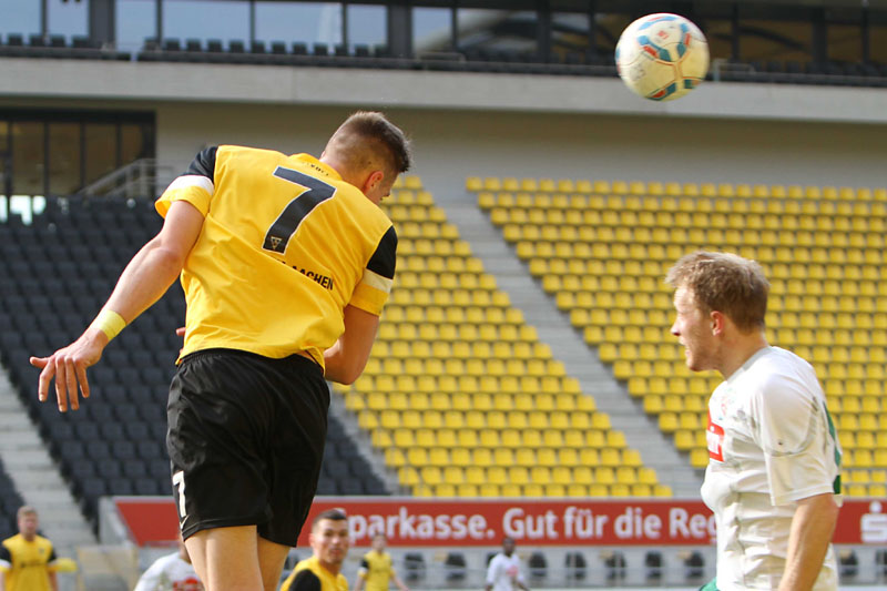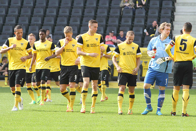 Zehn Minuten nach dem Seitenwechsel scheitere Stipermann mit einem Freistoß aus 18 Metern erneut am reaktionsstarken TuS-Schlussmann. Nach 63 Minuten war es dann endlich so weit. Pozder flankte von der linken Grundlinie zurück auf den langen Pfosten, wo Marquet nur noch einzunicken brauchte – 1:0 (63.). Die Aachener standen in der Defensive bombensicher und erzielten neun Minuten vor dem Ende die Entscheidung. Eine Freistoßhereingabe von Hermes fiel vor die Füße von Marquet, der die Kugel mit einem sehenswerten Seitfallzieher zum 2:0 unter die Latte hämmerte (80.). Die Schwarz-Gelben festigten damit den zweiten Tabellenplatz, der zum direkten Aufstieg in die Regionalliga berechtigen würde.
