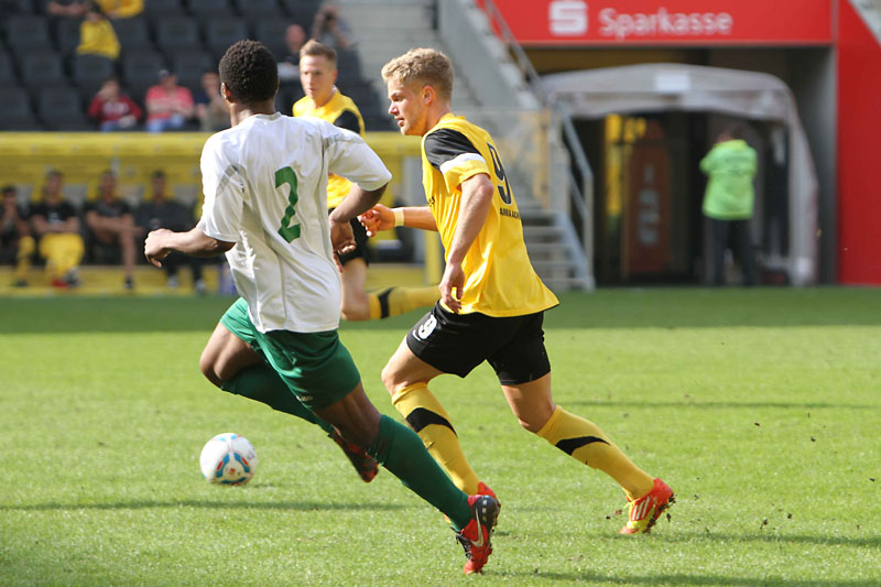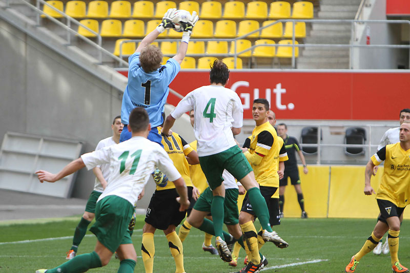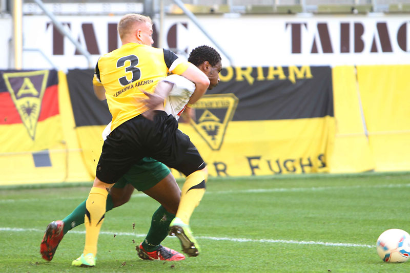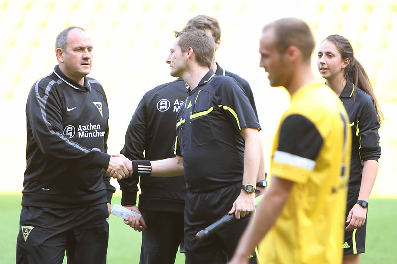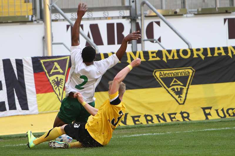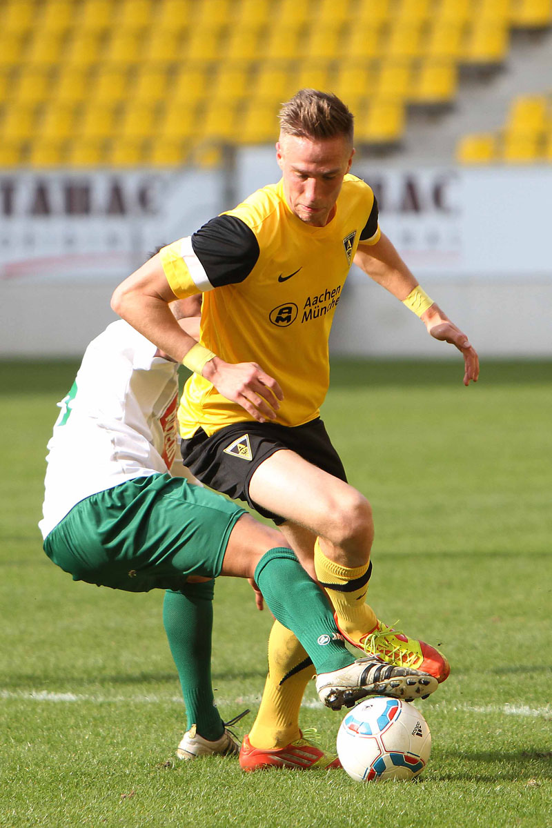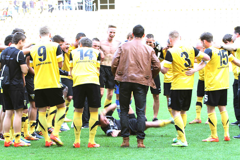 Zehn Minuten nach dem Seitenwechsel scheitere Stipermann mit einem Freistoß aus 18 Metern erneut am reaktionsstarken TuS-Schlussmann. Nach 63 Minuten war es dann endlich so weit. Pozder flankte von der linken Grundlinie zurück auf den langen Pfosten, wo Marquet nur noch einzunicken brauchte – 1:0 (63.). Die Aachener standen in der Defensive bombensicher und erzielten neun Minuten vor dem Ende die Entscheidung. Eine Freistoßhereingabe von Hermes fiel vor die Füße von Marquet, der die Kugel mit einem sehenswerten Seitfallzieher zum 2:0 unter die Latte hämmerte (80.). Die Schwarz-Gelben festigten damit den zweiten Tabellenplatz, der zum direkten Aufstieg in die Regionalliga berechtigen würde.