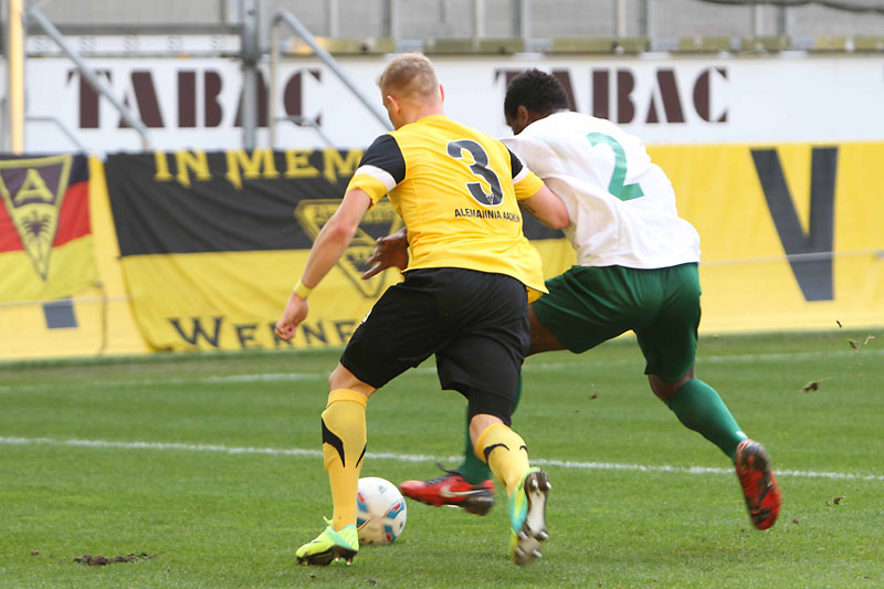 Alemannia Aachen II: Hohs – Wilschrey, Frau, Hofmann, Hermes – Lang (75. Strifler), Schmitz – Stiepermann, Marquet (83. Lekesiz), Lubasa (63. Strujic) – Pozder / Trainer: Ralf Aussem