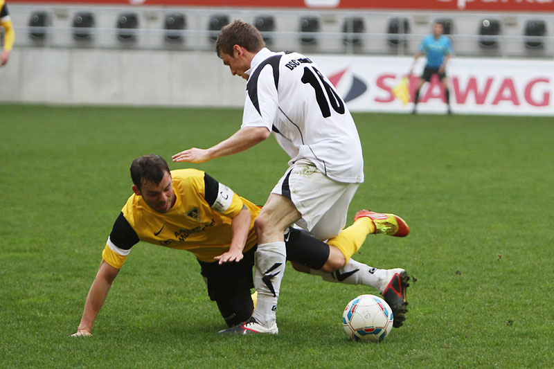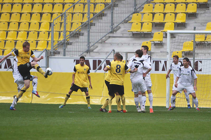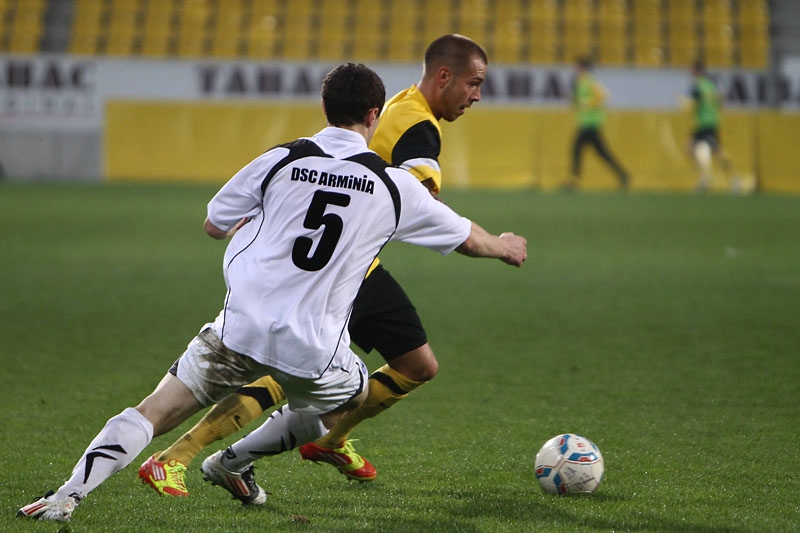 Bielefeld ließ sich nicht beirren und nutze im zweiten Durchgang nun auch seine Chancen konsequent. Nach einem langen Ball tauchte Barton frei vor Krumpen auf und schob die Kugel zum 1:1 ins lange Eck (59.). Eine Flanke des stark aufspielenden Turhan köpfte Heermann eine gute Viertelstunde vor dem Ende zum 1:2 ins Netz (74.). Mit dem zweiten Torschuss hätte Denis Pozder aus spitzem Winkel beinahe noch den schmeichelhaften Ausgleich erzielt (80.). Nach Gelb-Rot gegen Strifler (84.) mussten die Tivoli-Kicker in Unterzahl aufmachen und rannten in der Nachspielzeit in den entscheidenden Konter. Mazuollo traf für die Arminen zum 1:3 (90.+3.).