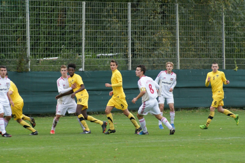 In einer vorgezogen Partie des 8. Spieltags traf die U17 der Alemannia am Sonntag, 13.10.2013, vor heimischer Kulisse auf den ungeschlagenen Tabellenführer Bayer 04 Leverkusen. Die Schützlinge von Marc Gillessen schlugen sich unter dem Strich wacker, auch wenn die Partie letztendlich mit 1:4 (0:3) standesgemäß verloren ging.
