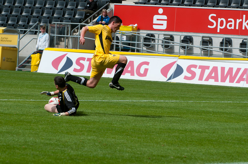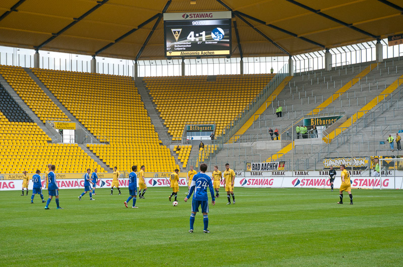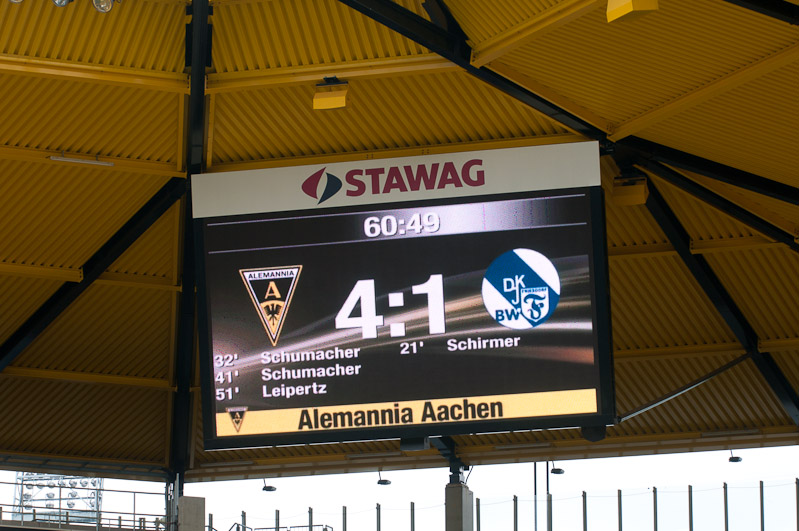 Nach dem Wechsel war es erneut die Alemannia, den klar den Ton angab. Tim Wilden traf wenige Sekunden nach dem Wechsel nach einem Zuspiel von Jan-Henrik Rother nur die Latte, ehe Robert Leipertz einen schönen Angriff in der 51. Minute mit dem vorentscheidenden 4:1 erfolgreich abschloss.