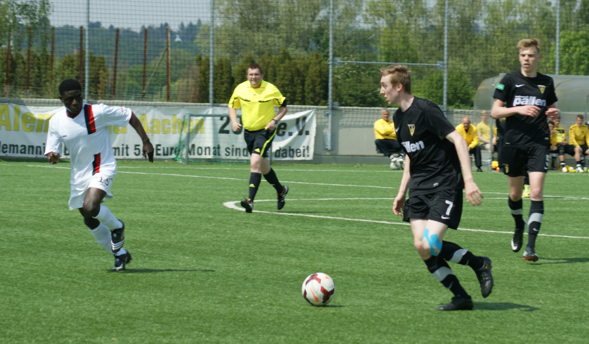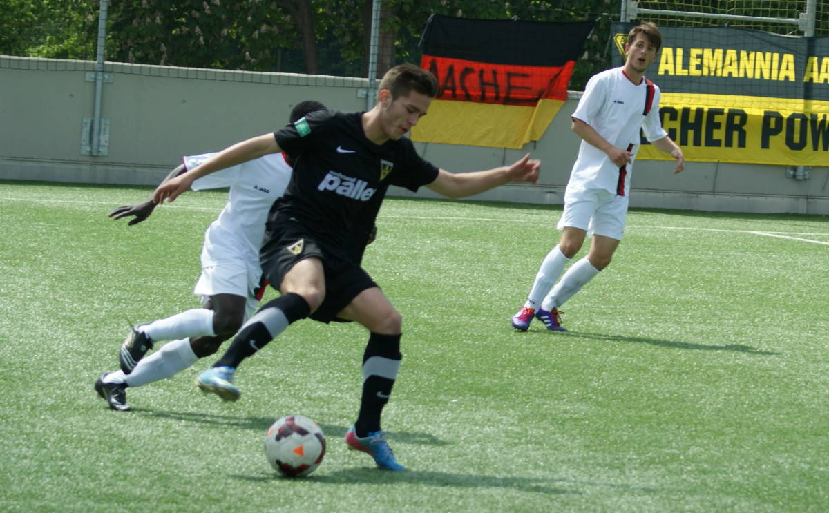 Die U19 der Alemannia hat am Sonntag, 4. Mai 2014, zwei wichtige Zähler liegen lassen. Nach 90 Minuten führte die Kallenbach-Elf gegen den Tabellenvierten FC Rheinsüd Köln mit 3:2 und hätte so nach Punkten mit Spitzenreiter Viktoria Köln gleich ziehen können. In der Nachspielzeit sorgte Kaya mit seinem Ausgleichstreffer zum 3:3 allerdings für blankes Entsetzen bei den Schwarz-Gelben.