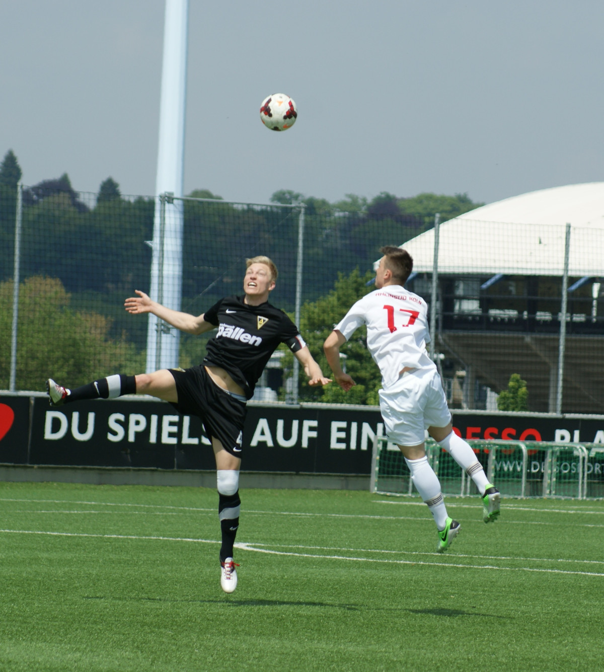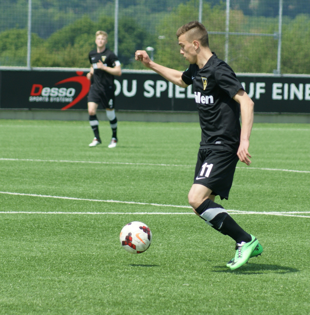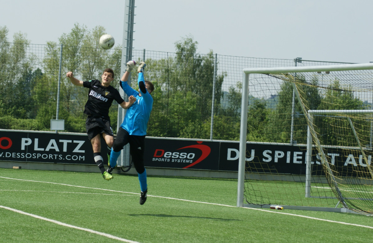 Die Tivoli-Kicker konnten vor der Pause aus ihrer Überlegenheit kein Kapital schlagen und wurden nach dem Seitenwechsel dann zunächst kalt erwischt. Weber-Verlinden zirkelte einen Freistoß aus 25 Metern zum 0:1 in die Maschen (48.). Die jungen Alemannen schüttelten sich kurz und schlugen nur drei Minuten später durch Hasani zurück – 1:1 (51.). Nach einer Ecke von der linken Seite stand Stecker wenig später goldrichtig und traf zur 2:1-Führung (57.). Die Partie ging nun hin und her. Yildiz vergab noch 68 Minuten die Vorentscheidung und traf nur den rechten Pfosten. Zwei Minuten später schloss Hahn eine Kopfballstafette zum Ausgleich ab (70.). Die Schwarz-Gelben fanden auch diesmal die passende Antwort. Hasani konnte im Strafraum nur durch ein Foul gebremst werden und Kühnel verwandelte den fälligen Strafstoß sicher zur erneuten Führung (76.). Diese hatte bis in die Nachspielzeit Bestand. Dann konnte der eingewechselte Kaya sich im Aachener Strafraum um seinen Gegenspieler drehen und ließ Keeper Flekken mit einem harmlosen Schuss alt aussehen – 3:3 (90+1.).