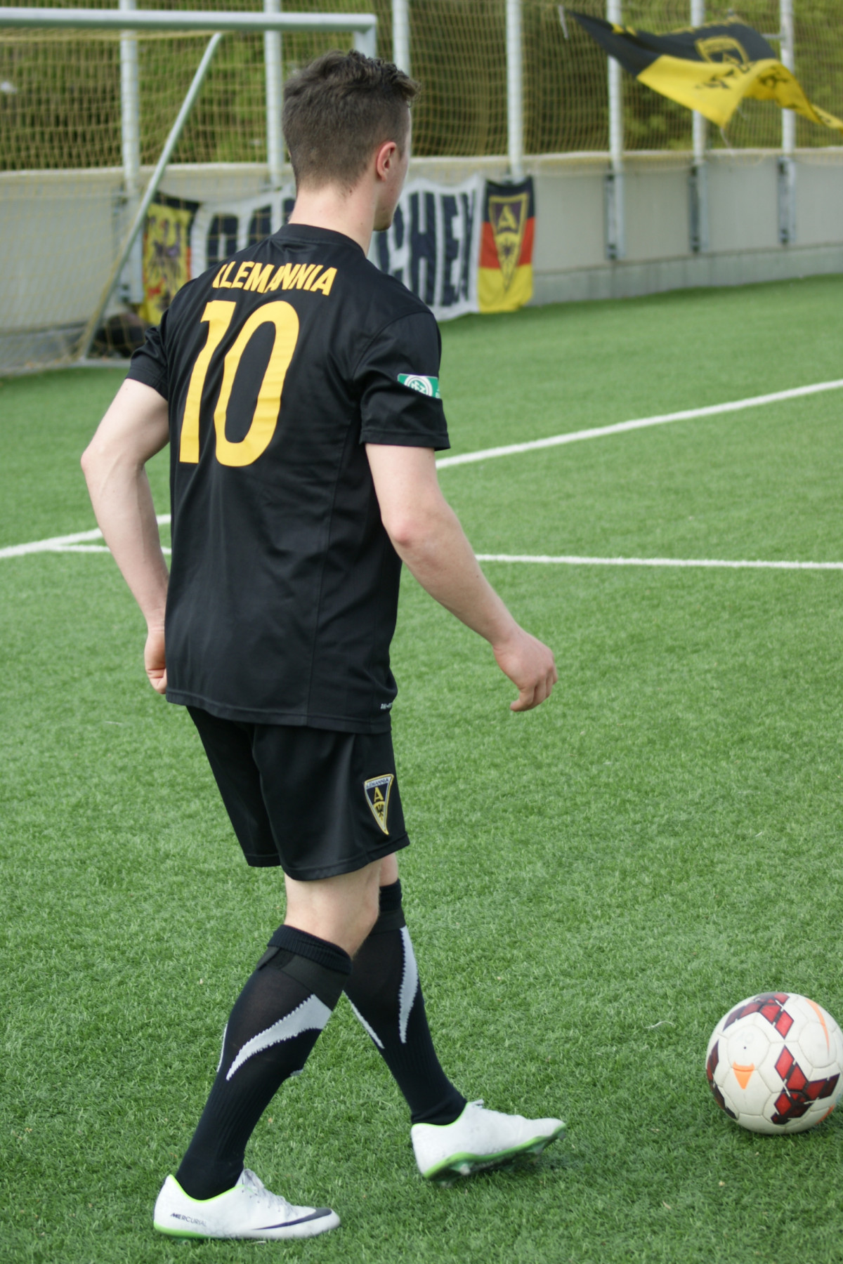 Diese Führung hatte bis zur 87. Minute bestand. Dann schlug der eingewechselte Kölner Stavros Kosmidis eine scharfe Flanke von der linken Seite, die Aachens Keeper Roy Flekken unglücklich zum Ausgleich hinter die Linie fallen ließ. Zu diesem Zeitpunkt wäre der Rückstand auf die Tabellenspitze sieben Spielrunden vor Schluss auf vier Zähler angewachsen. Doch mit einer weiteren Standardsituation gelang der Alemannia in der Schlussminute noch der Siegtreffer. Eine Linksecke von Tobias Mohr wuchtete Andreas Mertens aus fünf Metern zum vielumjubelten 2:1 unter die Latte. Das Titelrennen bleibt damit spannend. Nächster Gegner ist am kommenden Sonntag, 13. April 2014, der Tabellenvorletzte DJK Viktoria Frechen. Der Anstoß erfolgt um 11.00 Uhr auf dem Kunstrasenplatz Alkmaar.