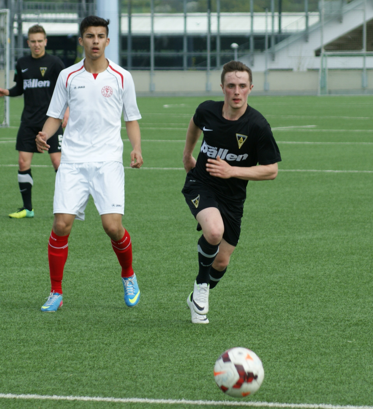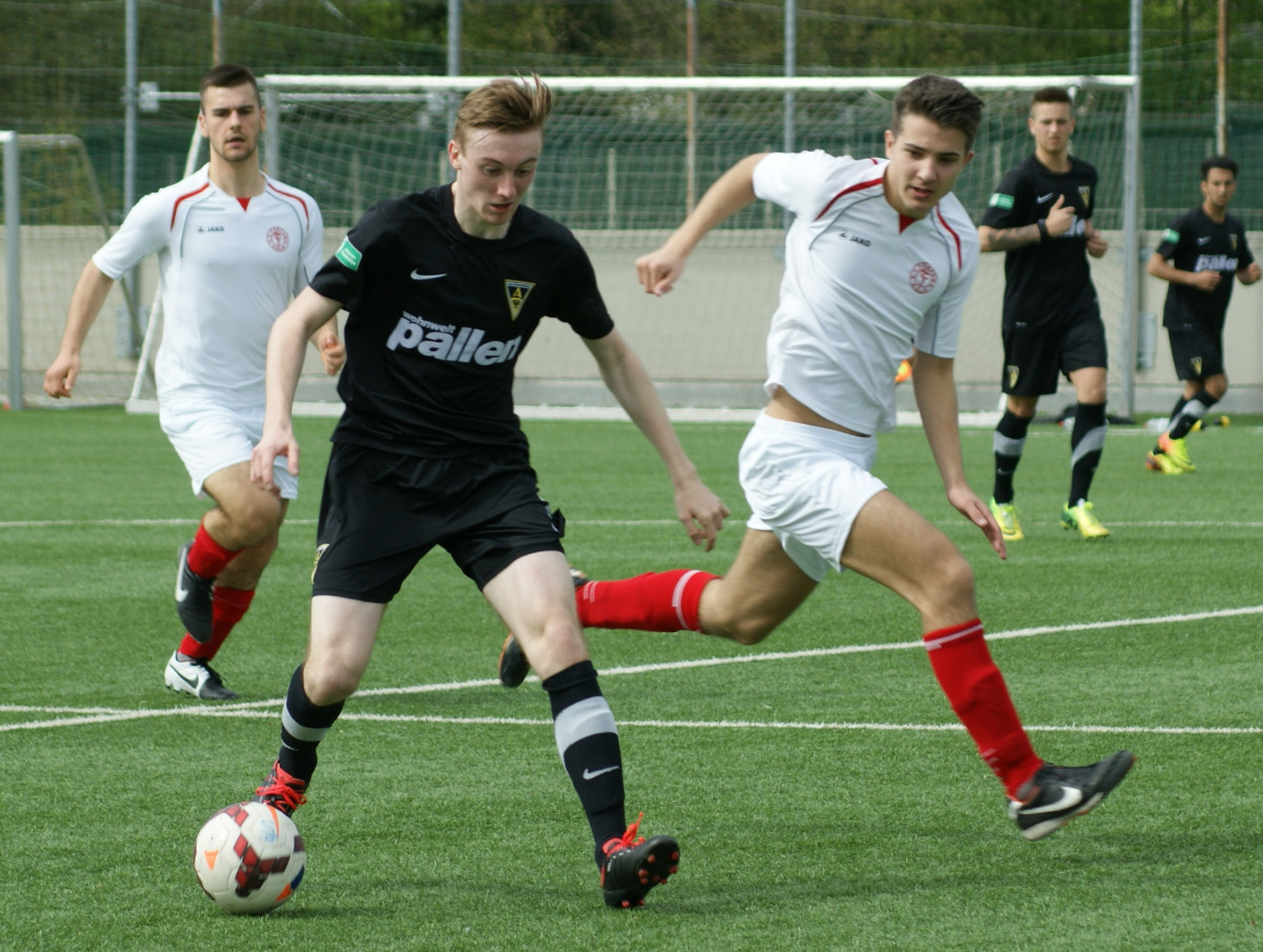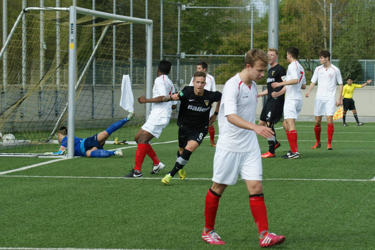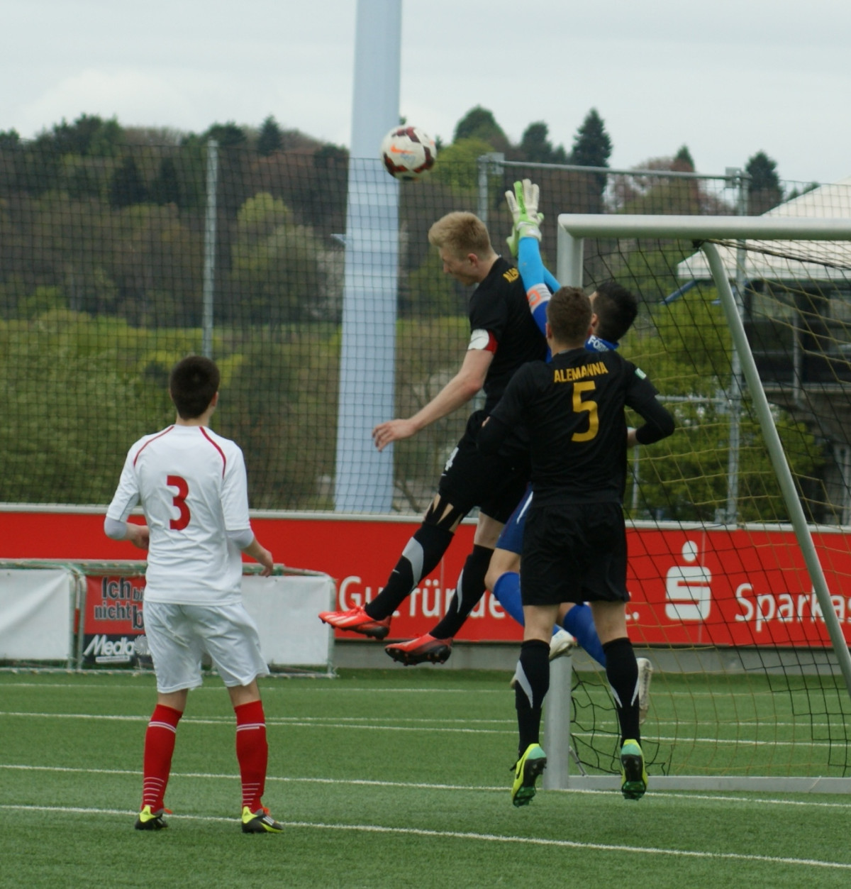 Der Dreikampf an der Tabellenspitze der A-Junioren-Verbandsliga geht weiter. Die Schlussphase beim 2:1-Erfolg der Aachener U19 gegen Fortuna Köln war allerdings nichts für schwache Nerven. Die Gäste waren in der 87. Minute zunächst zum Ausgleich gekommen, ehe Andreas Mertens den Alemannen mit einem Kopfball in der Schlussminute doch noch ein Happy-End bescherte.