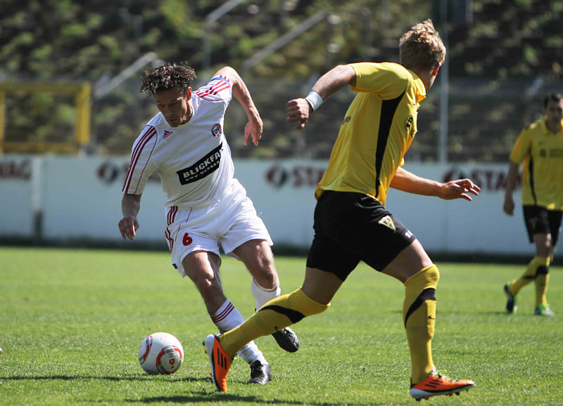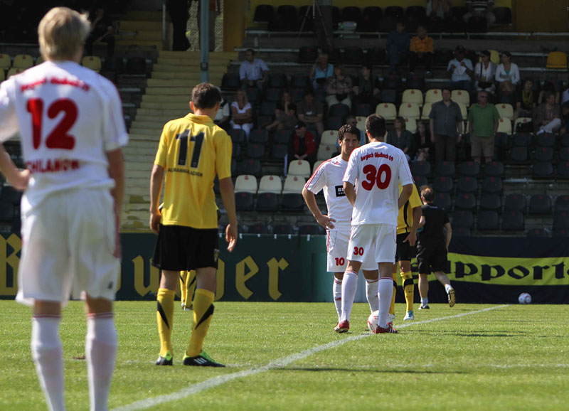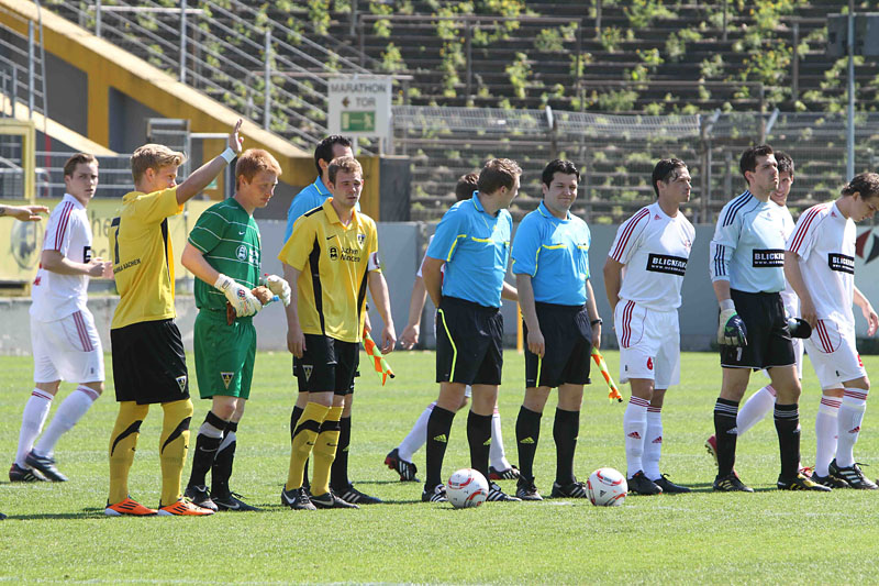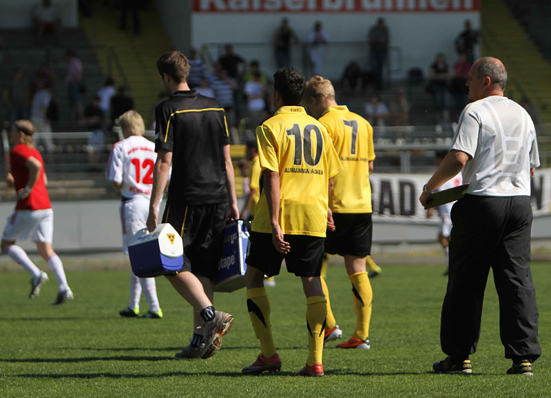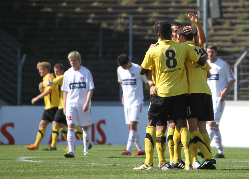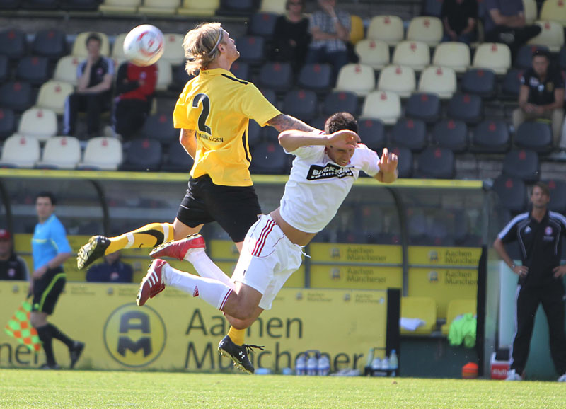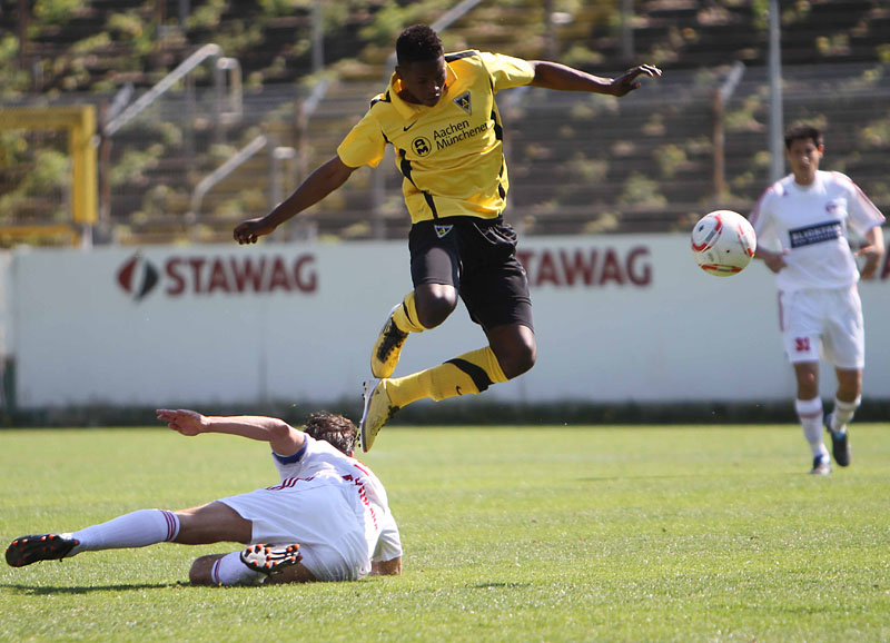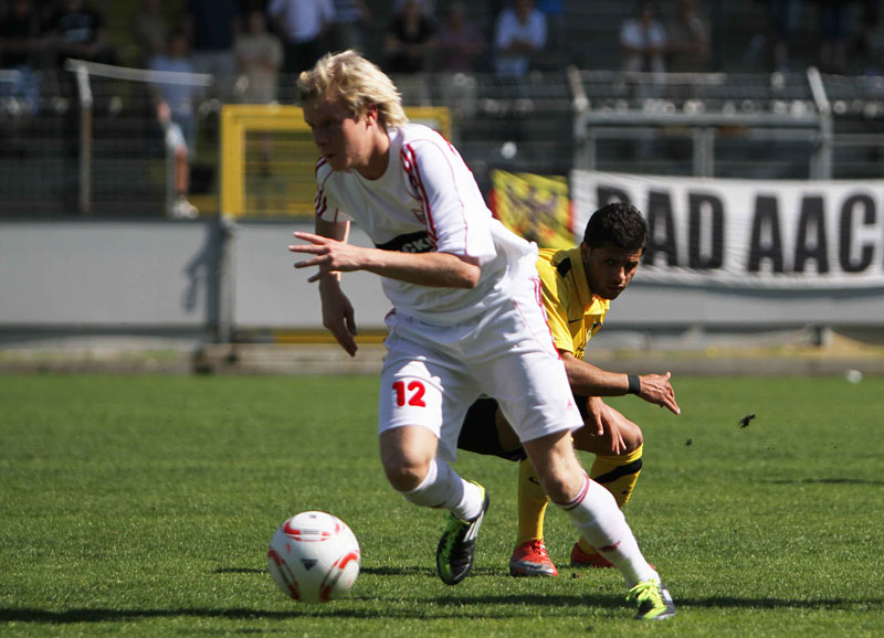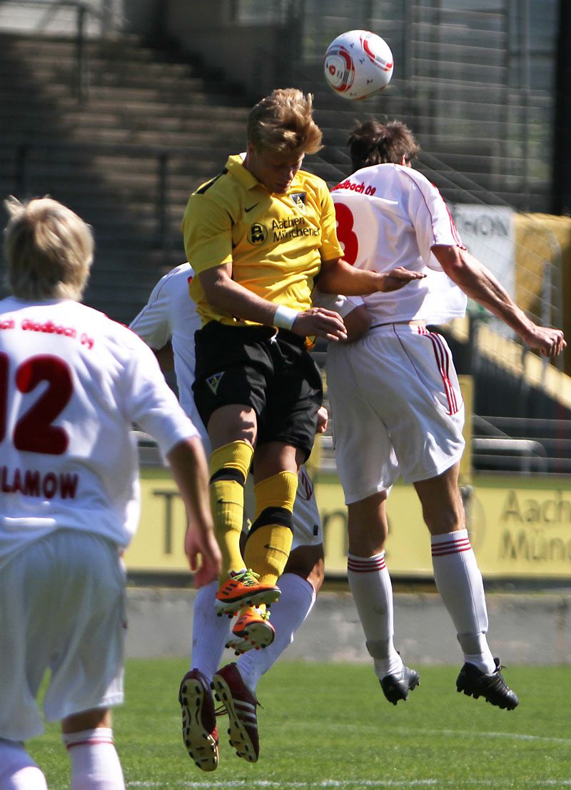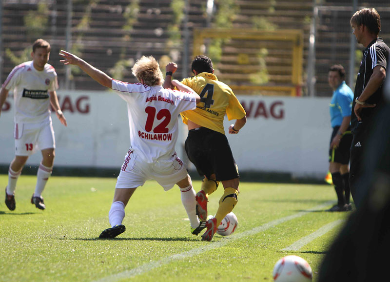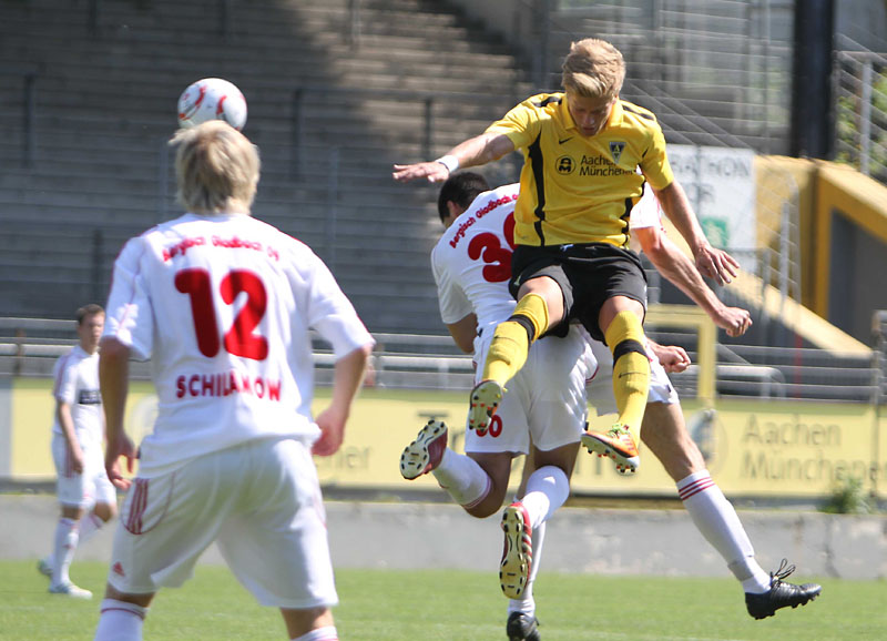 Vor 225 Zuschauern auf dem alten Tivoli kamen die Schwarz-Gelben nach einer Viertelstunde zu ihrer ersten Torgelegenheit. Einen 16m-Schuss von Gökan Lekesiz konnte Gästekeeper Forsbach aber noch um den kurzen Pfosten lenken. Keine zwei Minuten später rettete der Schlussmann bei einem Kopfball von Radu erneut stark (17.). In der 27. Minute ging der Schuss überraschend nach hinten los. Nach einem langen Ball aus der eigenen Hälfte konnte Schilamow der Aachener Abwehr enteilen und die Kugel abgeklärt zum 0:1 einschieben. Doch noch vor dem Seitenwechsel kamen die jungen Alemannen zum Ausgleich. Nach Vorarbeit von Radu stocherte Daniel Engelbrecht das Leder mit seinem bereits 19. Saisontor zum 1:1 über die Linie (41.).