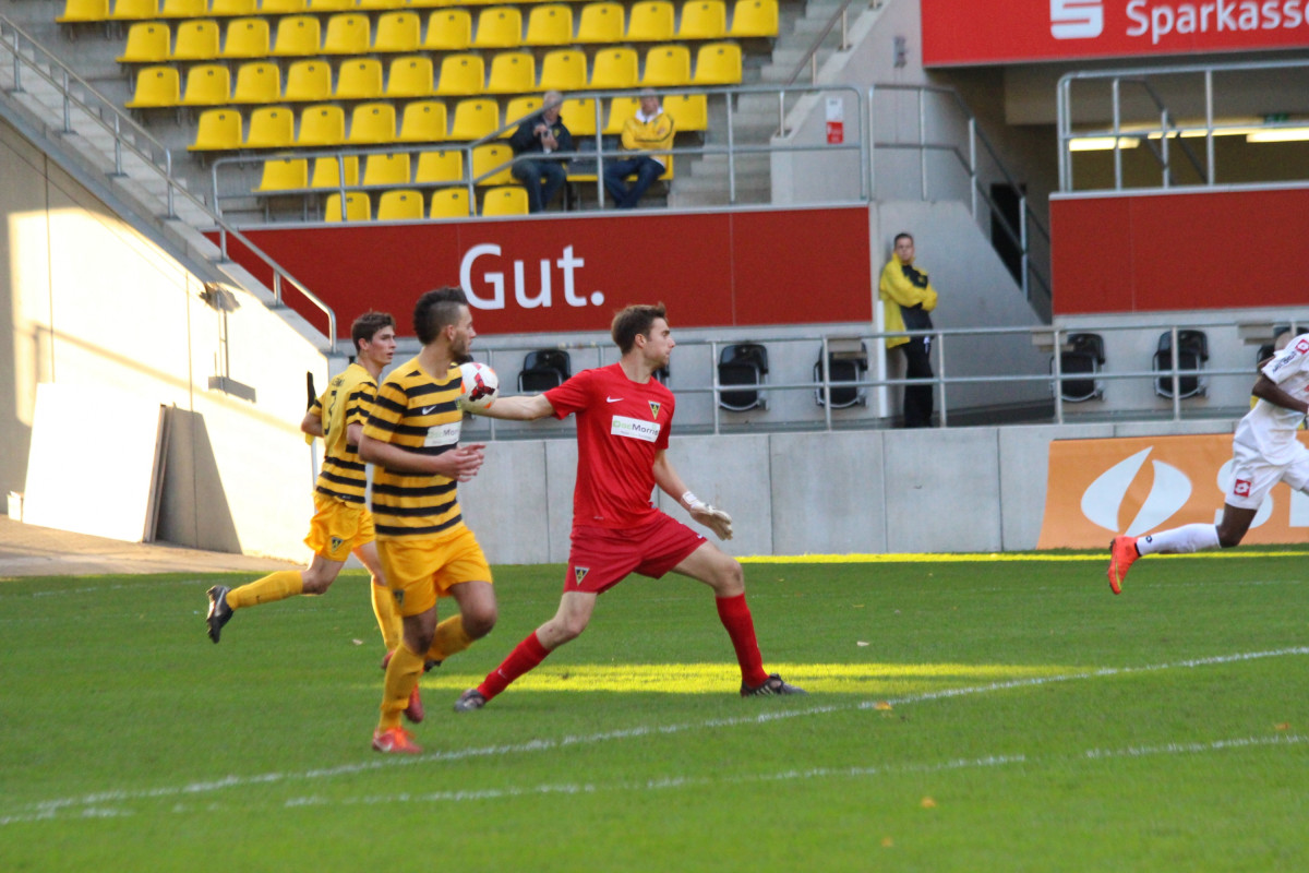 Der zweite Spielabschnitt verlief lange ereignisarm, bis Schiri Heller den Aachener Angiulli nach einem robusten Zweikampf mit Eckert mit einer roten Karte des Feldes verwies – eine äußerst harte Entscheidung (73.). Vielleicht war die Aktion so etwas wie der Wachrüttler. Denn in Unterzahl stemmten sich die jungen Alemannen weiter gegen drohende Niederlage. Nach einer Freistoßhereingabe von Mohr konnte Michel einen Kopfball von Brauweiler erneut noch über die Latte lenken. Im Anschluss an die nachfolgende Ecke traf wiederum Brauweiler nur das Außennetz (80.). Die beste Gelegenheit zum Ausgleich vergaben die Tivoli-Kicker sieben Minuten vor dem Ende. Dautzenberg hatte das Leder in den Strafraum gepasst und mit einer Direktabnahme traf Mohr nur die Latte (83.). Effektiver machten es die Gäste, die sich die Entscheidung für die Schlussminute aufbewahrten. Der eingewechselte Schmidt traf nach Vorarbeit von der rechten Seite zunächst nur die Latte, aber im Nachsetzen wuchte Sumoah das Leder entschlossen in die Maschen – 0:2 (90.).