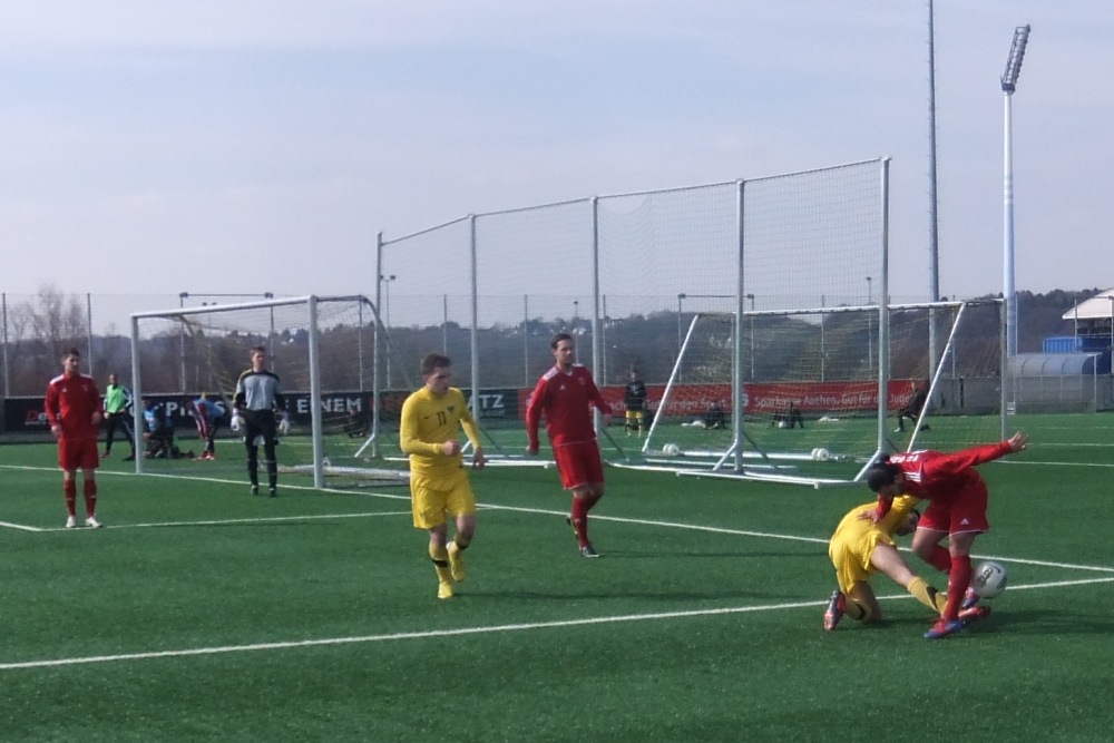 In einem Nachholspiel des 14. Spieltages besiegte die zweite Mannschaft der Alemannia am Ostermontag den FC Hürth mit 3:0. Vor 125 Zuschauern fielen die Treffer durch Sven Schaffrath, Robert Leipertz und Maxim Philippe bereits im ersten Spielabschnitt. Als Tabellenvierter liegen die Schwarz-Gelben weiterhin sechs Zähler hinter Spitzenreiter SC Brühl, der allerdings zwei Spiele mehr ausgetragen hat.