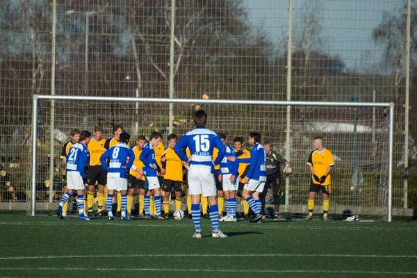 Neben David Hohs und Faton Popova sammelte auch Hrvoje Vukovic Spielpraxis in der Tivoli-Reserve, die gegen den punktgleichen Mitkonkurrenten im Rennen um Qualifikationsplatz 11 überhaupt nicht in Fahrt kam und sich über einen deutlichen Pausenrückstand nicht hätte beklagen können. Zunächst erlief der quirlige Tosonoglu eine zu kurz geratene Kopfballrückgabe, umkurvte Keeper Hohs und traf aus spitzem Winkel nur das Außennetz (14.). Auch in der nächsten Szene wirkte die Aachener Hintermannschaft konfus. Nachdem Hohs einen Tosognoglu-Schuss noch abwehren konnte, wurde ihm die Kugel vom eigenen Mitspieler in die Arme geschoben. Logische Konsequenz: Freistoß für die Zebras am Fünfmeterraum. Der erste Schuss von Tosonoglu wurde von der Mauer abgewehrt, der Nachschuss von Routinier Wolters ging zum Glück knapp vorbei (22.). Nach einer guten halben Stunde würde Gündüz von Windgens frei gespielt, schoss jedoch freistehend links am Aachener Tor vorbei (34.).