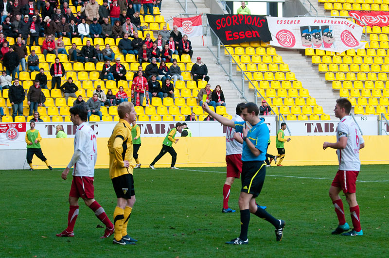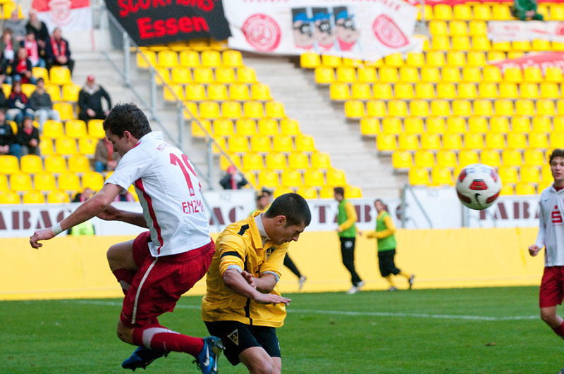Nach sechs Spielen ohne Niederlage und drei Heimsiegen in Folge musste sich die zweite Mannschaft am Samstagnachmittag vor 2300 Zuschauern mit 1:3 (0:1) gegen Spitzenreiter Rot-Weiss Essen geschlagen geben. Nach dem Anschlusstreffer von Daniel Engelbrecht (73.) keimte zwischenzeitlich noch einmal Hoffnung auf, die von den Gästen aber nur vier Minuten später mit dem dritten Treffer zunichte gemacht wurde.