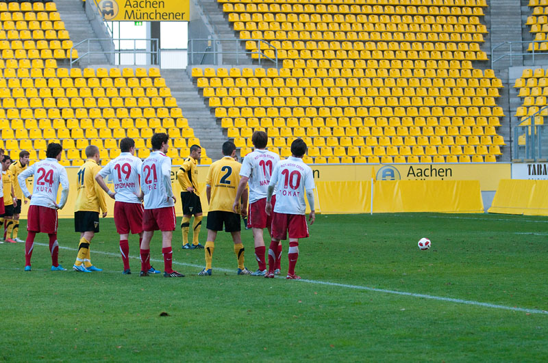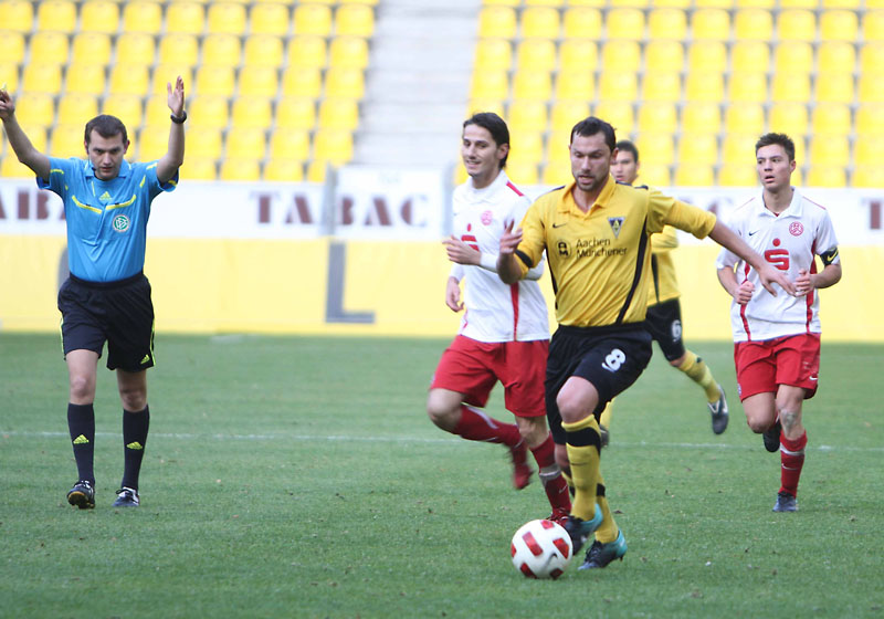 Alemannia Aachen II: Jorzig - Weilbier (79. Mostowfi), Malget, Frau, Korte - Temeltas (71. Demir) - Schnier, Lekesiz, Sabacinski (65. Wanneck) - Ojamaa, Engelbrecht / Trainer: Ralf Aussem
