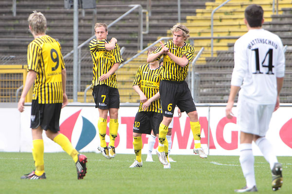 Die Amateure der Alemannia kamen am Ostersamstag zu einem 3:0-Erfolg gegen die SG Wattenscheid 09 und halten damit Kontakt zu den beiden Aufstiegsrängen in der NRW-Liga. Vor 320 Zuschauern erzielten Tibor Heber, Marco Höger sowie der eingewechselte Faton Popova die Tore auf dem Tivoli.