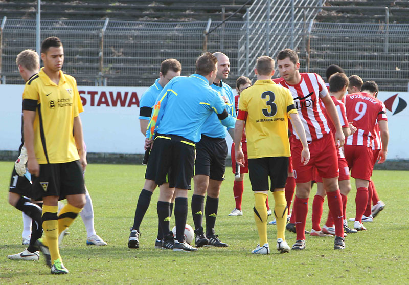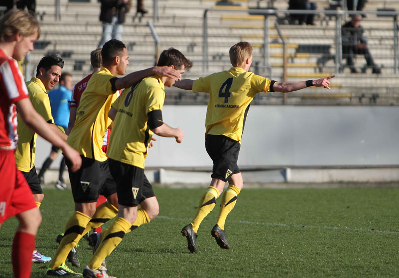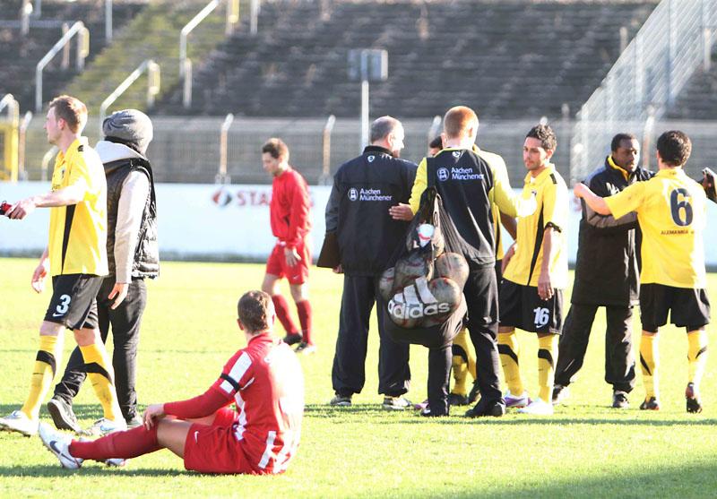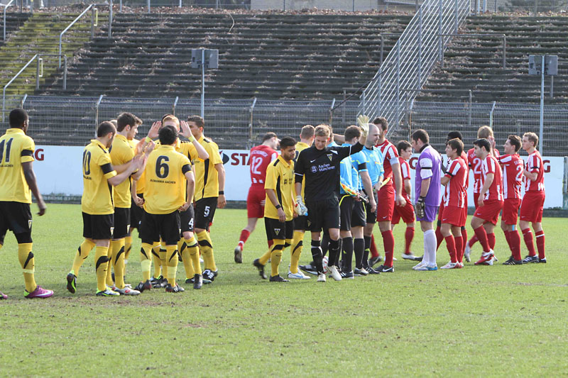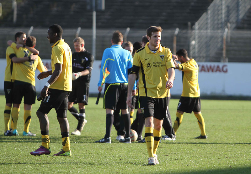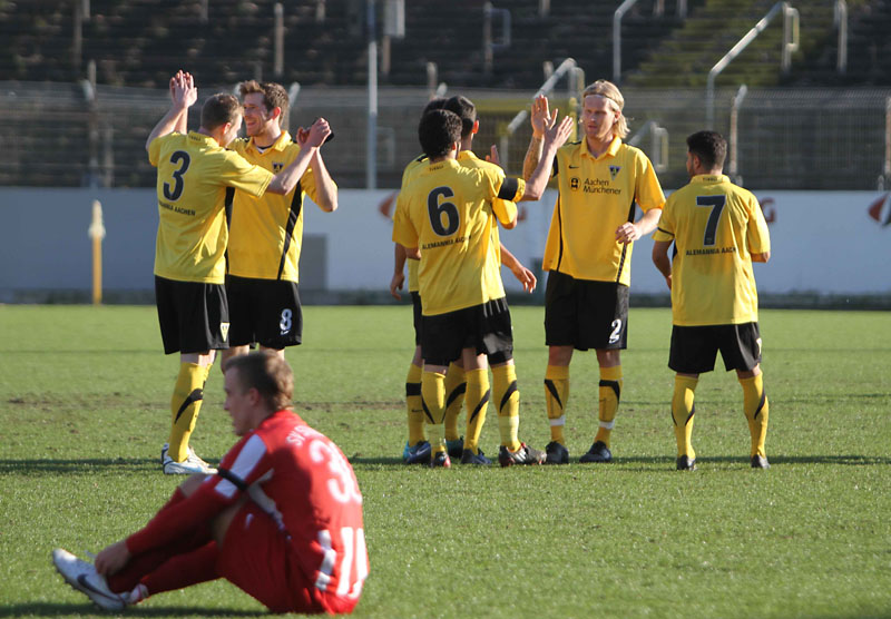 Alemannia Aachen II: Krumpen - Binder (90+1. Weilbier), Frau, Herzig, Korte - Temeltas - Mostowfi, Cubukcu (88. Sabacinski), Wanneck - Engelbrecht, Tsoumou (62. Lekesiz) / Trainer: Ralf Aussem
