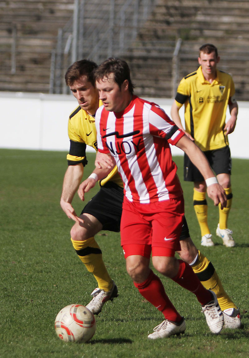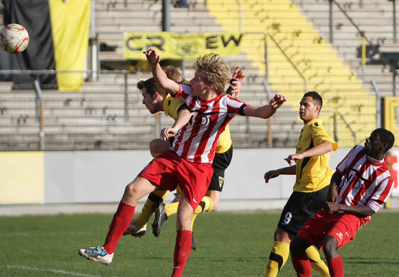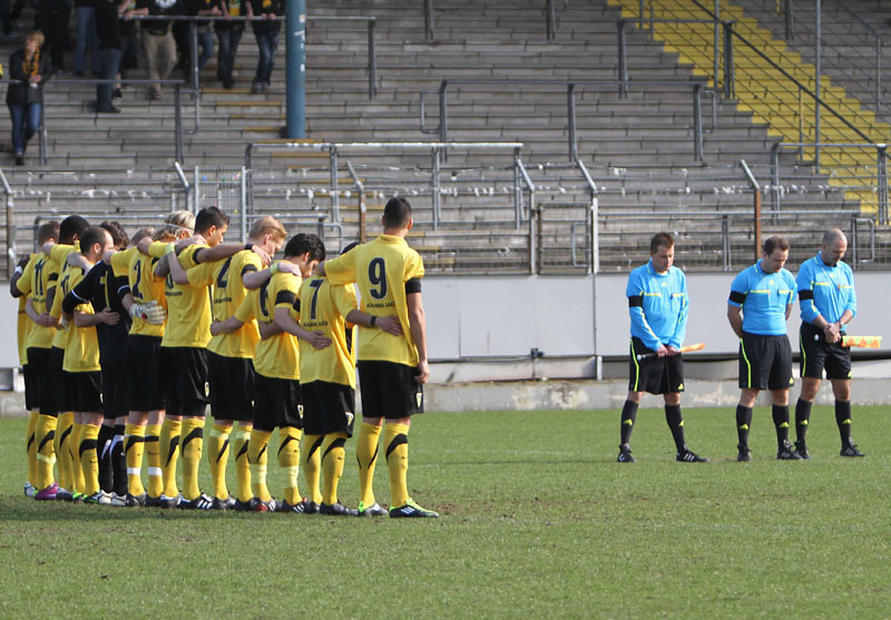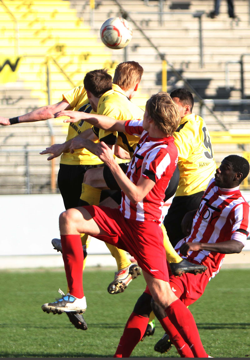 Auch im zweiten Spielabschnitt agierte Schermbeck offensiv harmlos. Die Schwarz-Gelben versäumten es allerdings, den Sack durch Engelbrecht (72., 84.) und Lekesiz (74.) frühzeitig zuzumachen. „Wir haben zulange gebraucht, um den zweiten Treffer nachzulegen. Natürlich besteht dann immer die Gefahr, dass wir uns bei einer Standardsituation noch einen Gegentreffer fangen“, kritisierte Aussem nach dem Spiel. Doch die Erlösung folgte in den Schlussminuten. Nach einem Pass von Wanneck erzielte Lekesiz mit einem Sololauf zunächst das 2:0 (86.) und eine Minute vor dem Ende köpfte Leon Binder eine Freistoßflanke von Andreas Korte zum den Gästen bereits auf den Vorjahren bekannten 3:0-Endstand ein (89.). Nachdem die jungen Alemannen nach der Winterpause allen drei Siegen zuvor jeweils eine Niederlage folgen ließen, soll die ominöse Achterbahnserie nach dem neuerlichen Erfolg am kommenden Sonntag im Mittelrheinderby gegen Fortuna Köln endlich gestoppt werden.