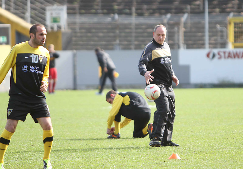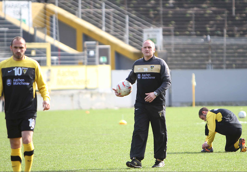 Doch bevor auch die Aachener Reserve ihren Heimspielort die Krefelder Straße stadtabwärts verlegen muss, gilt es noch einige Zähler zu sammeln. Denn die einzige Beständigkeit, die das Team von Ralf Aussem nach der Winterpause an den Tag gelegt hat, ist die Unbeständigkeit. Jedem Sieg im neuen Jahr folgte postwendend eine Niederlage. Zuletzt in Siegen reichte selbst eine 3:0-Pausenführung nicht aus, um dieser ominösen Serie ein Ende zu bereiten. „Wir haben es einfach nicht mehr geschafft, den Hebel umzulegen“, sagt Ralf Aussem, der die Partie am Montag im Dialog mit seiner Truppe noch einmal abgearbeitet hat. Da das Ziel der jungen Alemannen am Sonntag ganz klar „drei Punkte“ lautet, käme dem Trainer eine Fortsetzung der Achterbahnfahrt natürlich nicht ungelegen. „Nach dem Tief in Siegen wäre jetzt wieder ein Hoch an der Reihe“, hofft der Trainer.