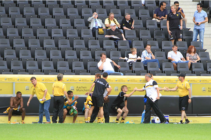 "Wir sind ja gewohnt, hier in Aachen zu verlieren. So nah wie heute waren wir noch nie dran", nahm Gästetrainer Martin Stroetzel die Niederlage mit Humor und spielte auf drei 3:0-Pleiten in den letzten Jahren am alten Tivoli an. "Ich kann mit der Leistung insgesamt zufrieden sein, nur das Ergebnis passt noch nicht. Wir haben gegen eine sehr starke Aachener Mannschaft gespielt, gegen die sich meine Elf nach der Pause zurück ins Spiel gebissen hat."