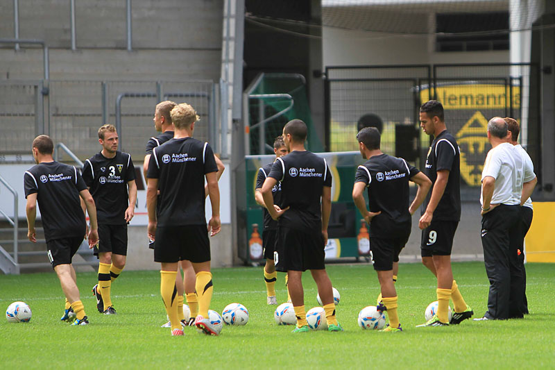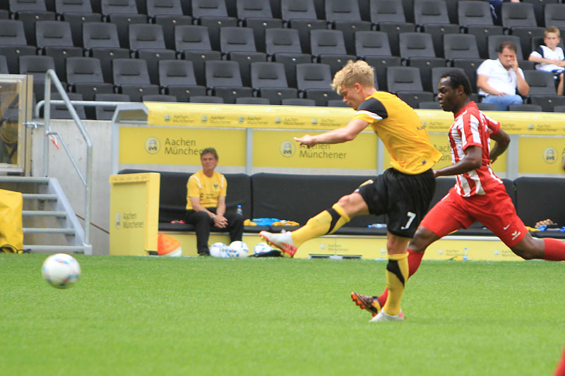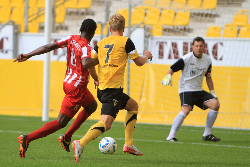 Bei der Alemannia gab es im Vergleich zum 1:0-Erfolg in Bergisch Gladbach in der Vorwoche eine Änderung: Profi Anouar Hadouir durfte im zentralen Mittelfeld anstelle von Aimen Demai ebenso wie Andreas Korte, Lennart Hartmann und Fabian Bäcker Spielpraxis sammeln.