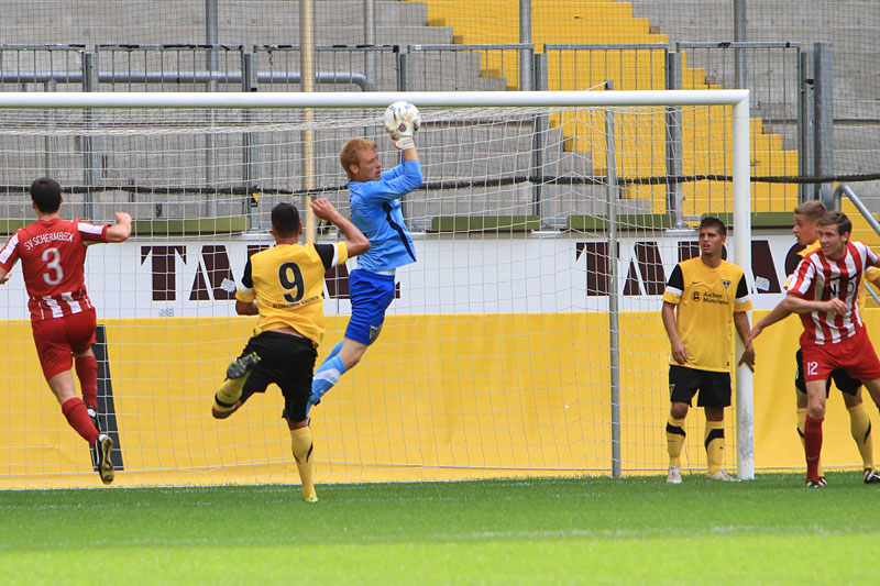 Dreimal war der SV Schermbeck bislang in Aachen zu Gast – und jedes Mal durften die Kicker aus dem Kreis Dorsten mit einer 0:3-Niederlage wieder die Heimreise antreten. Auch der Saisonstart verlief für die Elf von Martin Stroetzel nicht optimal. Mit null Punkten und 1:7 Toren aus den beiden ersten Partien müssen die Rot-Weißen sich erst einmal nach unten orientieren. Ralf Aussem lässt sich davon jedoch nicht blenden. „Schermbeck hat sich in diesem Jahr personell verstärkt und peilt einen Relegationsplatz unter den ersten sieben Teams der Liga an“, so der Aachener Trainer.