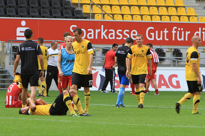 Die Rot-Weißen kamen nach dem Wechsel wacher aus der Kabine und wurden in der 49. Minute belohnt: Wieder war es Klimczok, der mit einer scharfen Hereingabe Matthias Müller bediente, der aus kurzer Distanz nur noch den Fuß hinhalten musste. Kurz darauf konnte Amir-Ali Mostowfi im letzten Moment gegen den einschussbereiten Klimczok retten, der die rechte Aachener Abwehrseite vor einige Probleme stellte. Nach weiteren Gelegenheiten für Ouro-Akpo (56.) und Klimczok (60.) hatte die Alemannia die Lage wieder besser unter Kontrolle. Engelbrecht nach einem Solo (55.), Marquet aus der Distanz (63.) und Patrizio Frau nach Hereingabe von Engelbrecht versäumten es jedoch, ein beruhigendes drittes Tor nachzulegen. In der Schlussphase ließ bei schwül-warmen Temperaturen das Tempo auf beiden Seiten ein wenig nach. Hartmann aus 20 Metern (76.) und über links (86.) hatte noch zwei gute Szenen. In der Nachspielzeit gab es bei einem Kopfball von Lupitu die letzte Schrecksekunde zu überstehen.