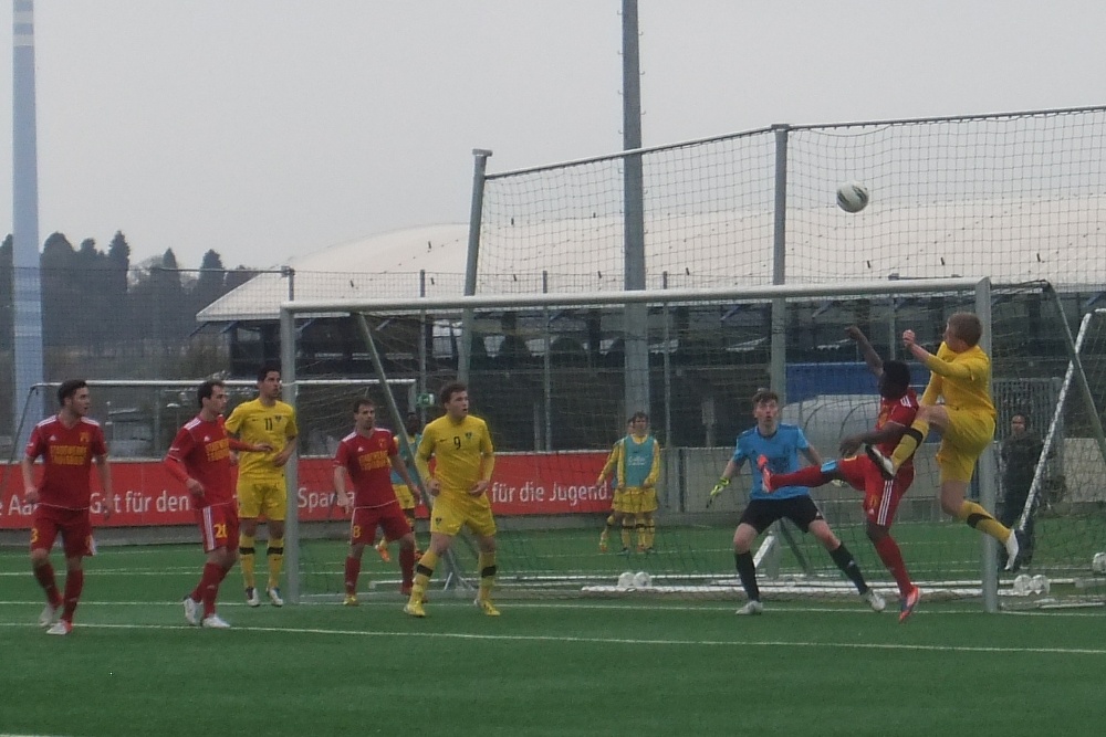 Vor 110 Zuschauern auf dem Kunstrasenplatz „Alkmaar“ nutzten die jungen Alemannen nach 20 Minuten ihre erste gute Möglichkeit direkt zur Führung. Dario Schumacher hatte Rafael Garcia in Szene gesetzt, der seinen Gegenspieler aussteigen ließ und das Leder dann platziert zum 1:0 ins lange Eck schlenzte. Nachdem Cenk Durgun für die Gäste den zwischenzeitlichen Ausgleich auf dem Fuß hatte (28.), kam der Alemannen-Express nach einer halben Stunde richtig in Fahrt. Ein Schuss von Rafael Garcia konnte noch von der Linie gekratzt werden (31.), ehe Jan-Frederick Göhsl nach einer Freistoßhereingabe von der linken Seite aus der Drehung zum 2:0 traf (32.). Dario Schumacher (35., 43.) und Raphael de Sousa (39.) hätten das Ergebnis noch vor der Pause in die Höhe schrauben können.