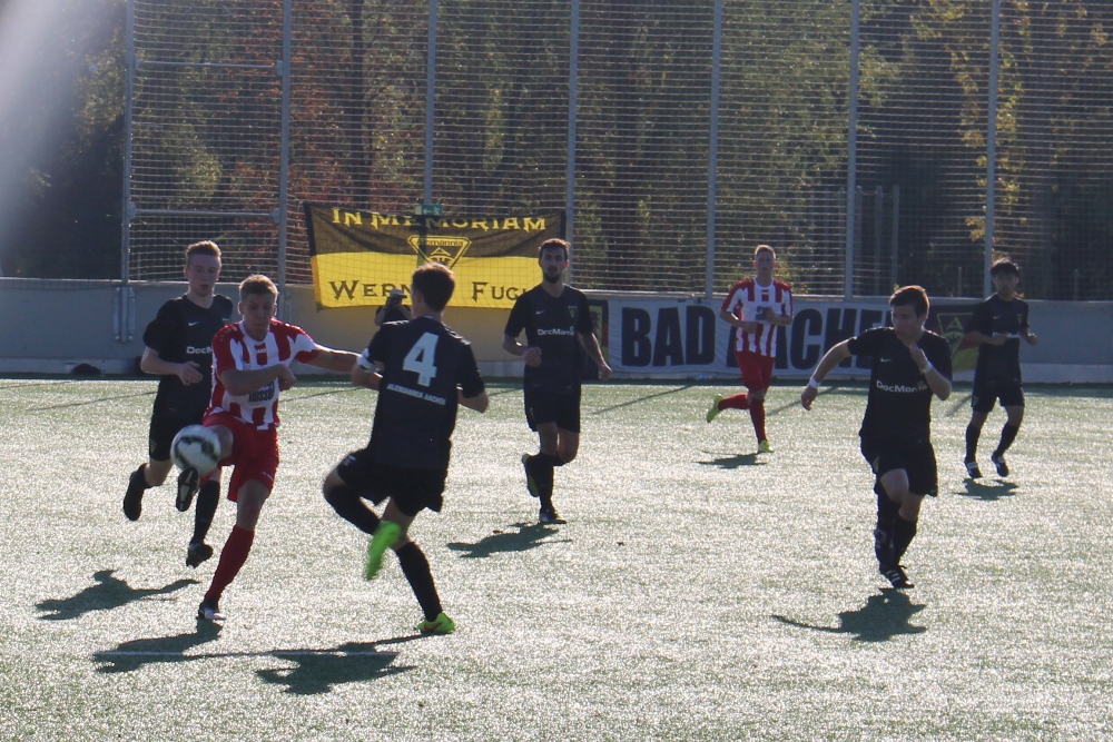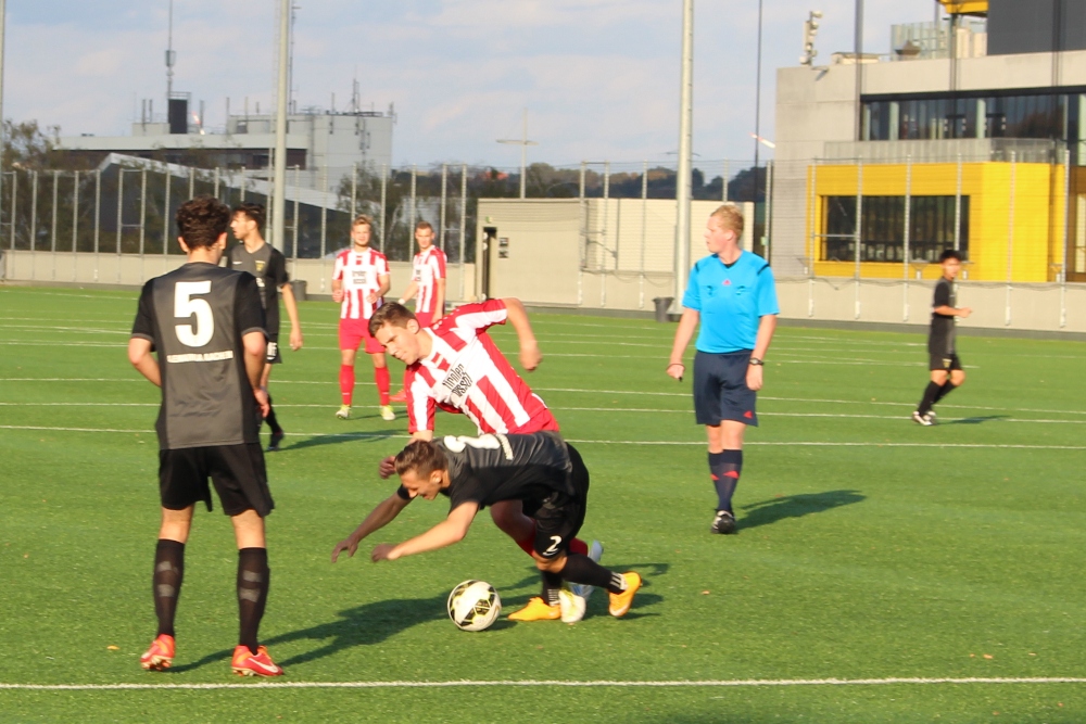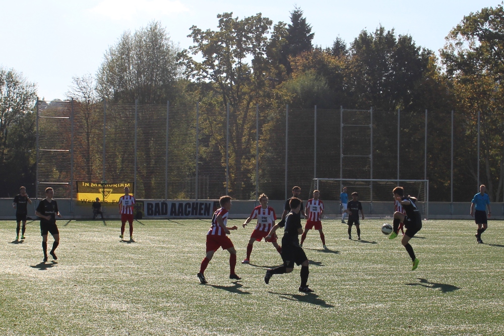 Nach vier Minuten Restspielzeit wurden die Seiten getauscht. Der zweite Spielabschnitt verlief zunächst ohne Höhepunkte, ehe der nicht nur in dieser Szene überfordert wirkende Unparteiische die Schaffrath-Elf dezimierte. Ito hatte Hoose in der gegnerischen Hälfte gelbwürdig gefoult, der Schiedsrichter bewertete die Situation jedoch anders und zog glatt Rot (59.). Als Kaiser mit einem Konter das 1:3 gelang (64.), hätte wohl niemand mehr einen Pfifferling auf die Aachener U21 gesetzt. Doch die Truppe wehrte sich nach Kräften und kam vier Minuten vor dem Ende durch einen wuchtigen Mohr-Schuss aus 18 Metern zum Anschlusstreffer. Die jungen Alemannen warfen nun alles nach vorne und wären in der Nachspielzeit um ein Haar noch mit dem Ausgleich belohnt worden. Der eingewechselte Sahin flankte von der rechten Seite und der ebenfalls ins Spiel gekommene Kühnel traf per Kopf nur die Latte.