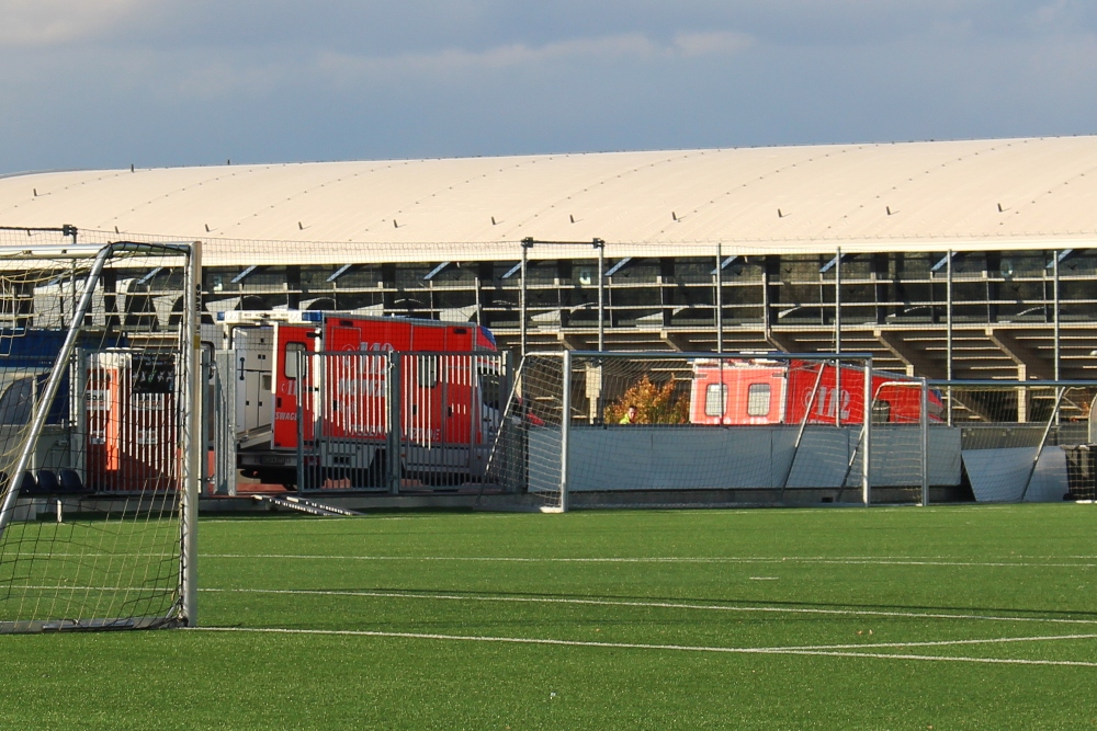 30 Minuten Unterbrechung nach 42 Spielminuten wegen Verletzungen von Dautzenberg (Aachen) und Golz (Euskirchen)